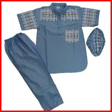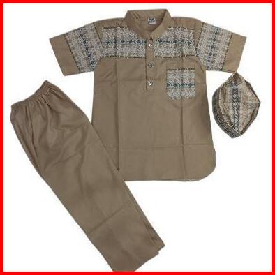Baju Koko Anak Laki Terbaru Usia 4-12 Tahun Bahan Katun Madinah Motif Songket Setelan Muslim Bordir Celana Nyaman Panjan