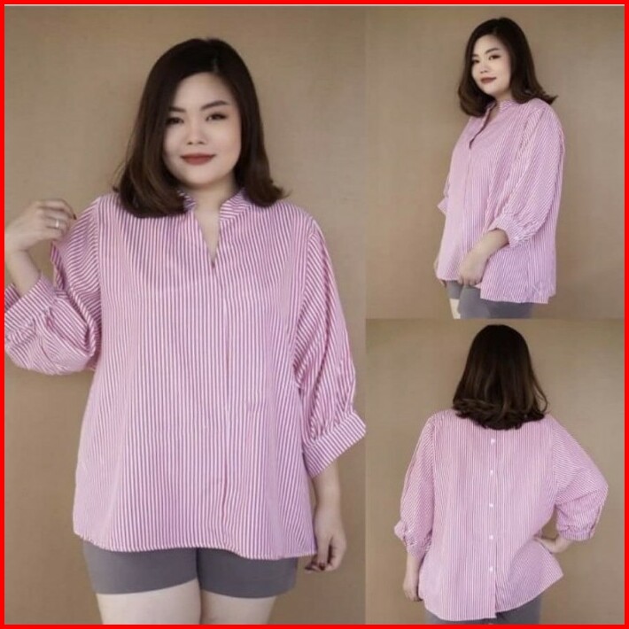 Blouse Bigsize Jumbo Wanita Ld 116cm Model Salur Bahan Katun-705 Hope
