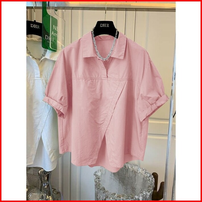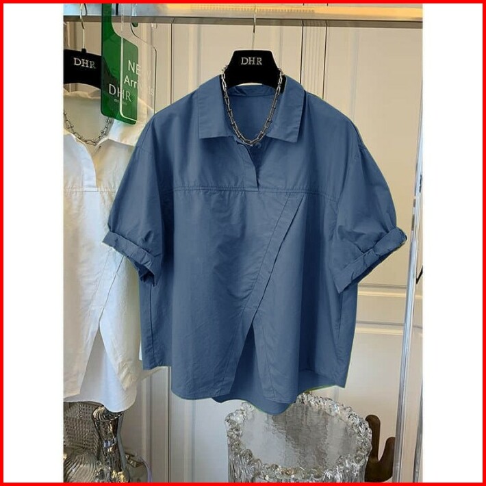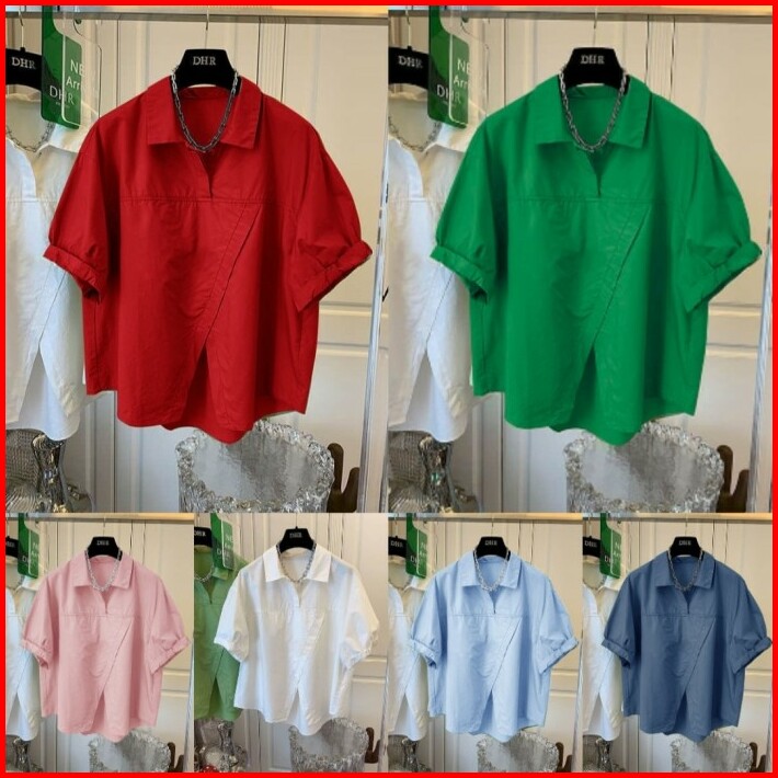 4jdd Blouse Blus Oversize Bigsize Jumbo Katun Poplin Kerah Kemeja Lengan Pendek Shortsleeves Slit Belahan Polos Basic Da