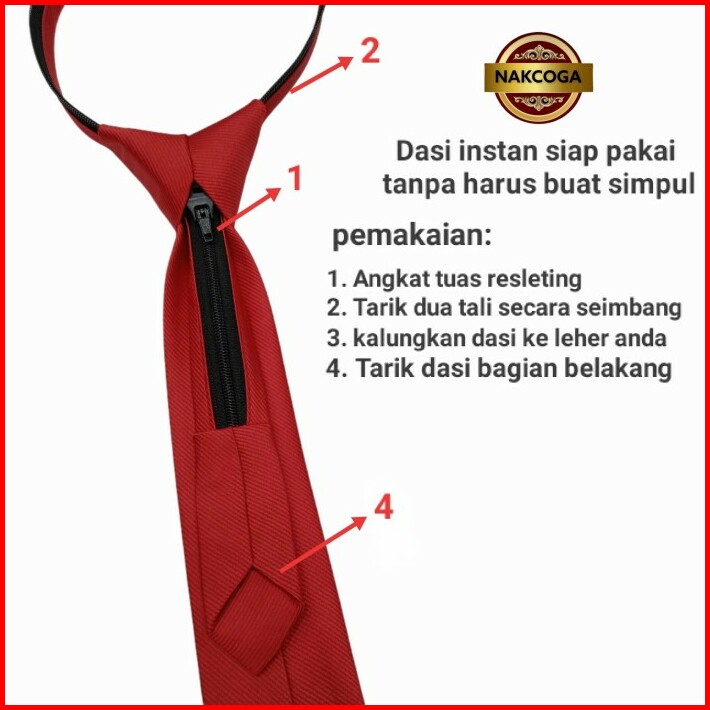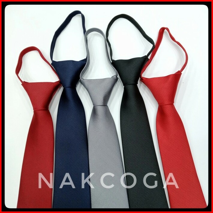 Dasi Polos Pria Terbaru Hitam Merah Maroon Zipper Siap Pakai