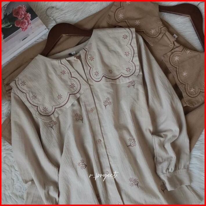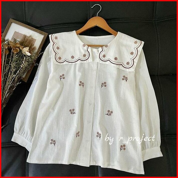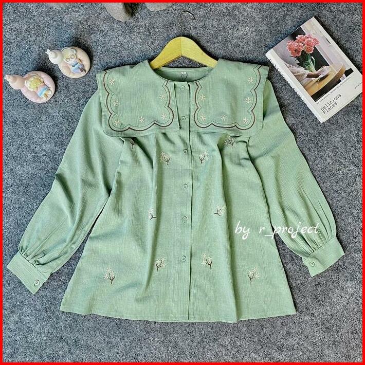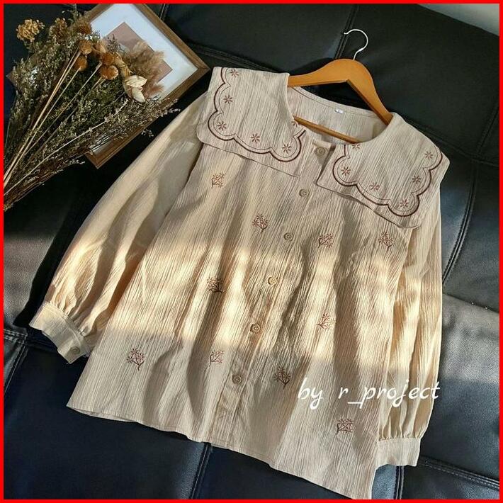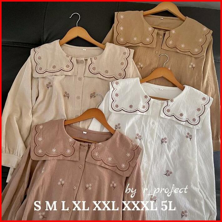 Atasan Bordir Linen Krinkle Ukuran 5l Xxxl Xxl Xl L M S Cyra Blouse Jumbo Atasan Lucu