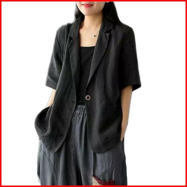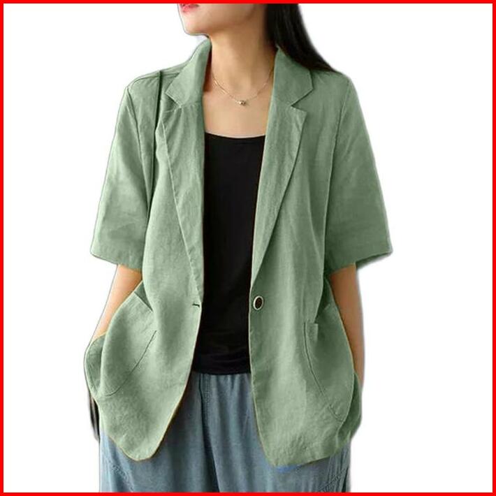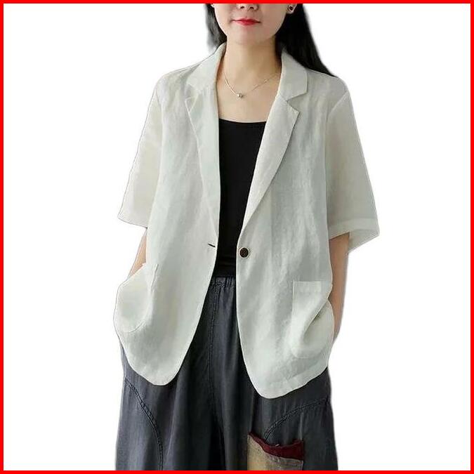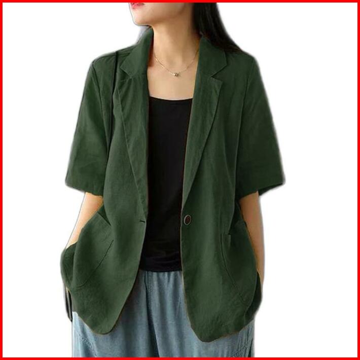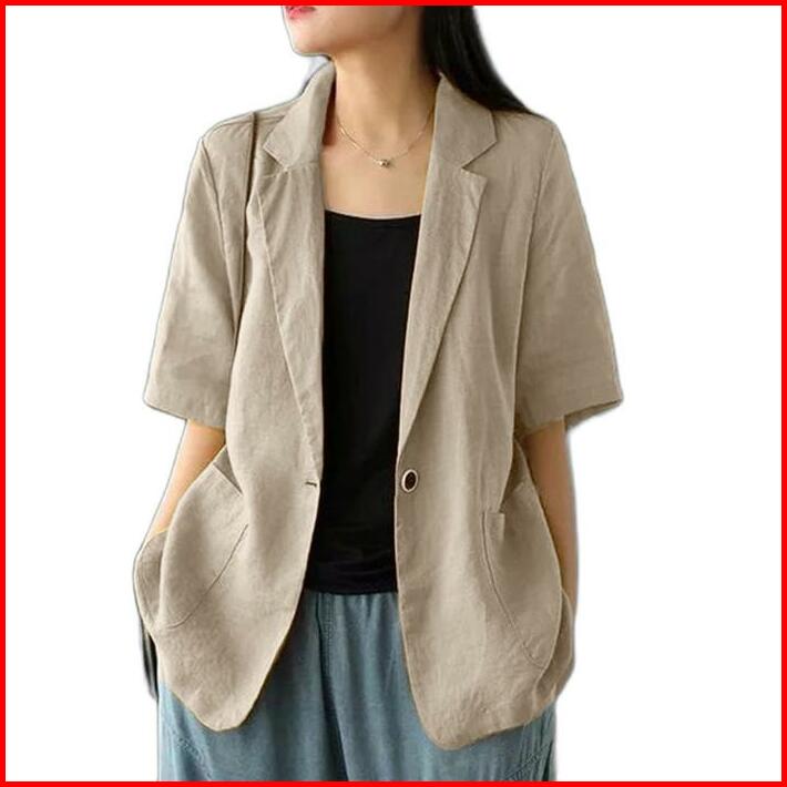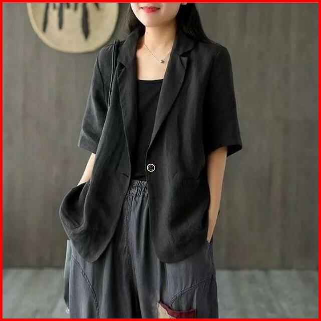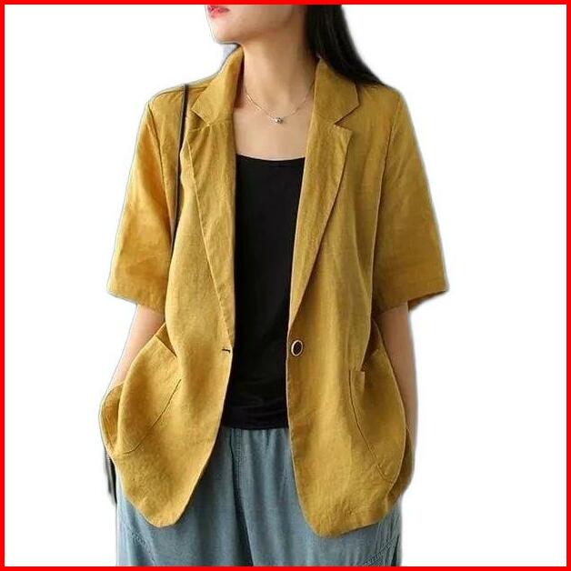 Atasan Wanita Blazer Lengan Pendek Linen Rami Ld 100 110 120 140cm Lucinta Blazer Blazer Korean Style Murah Berkerah Sli