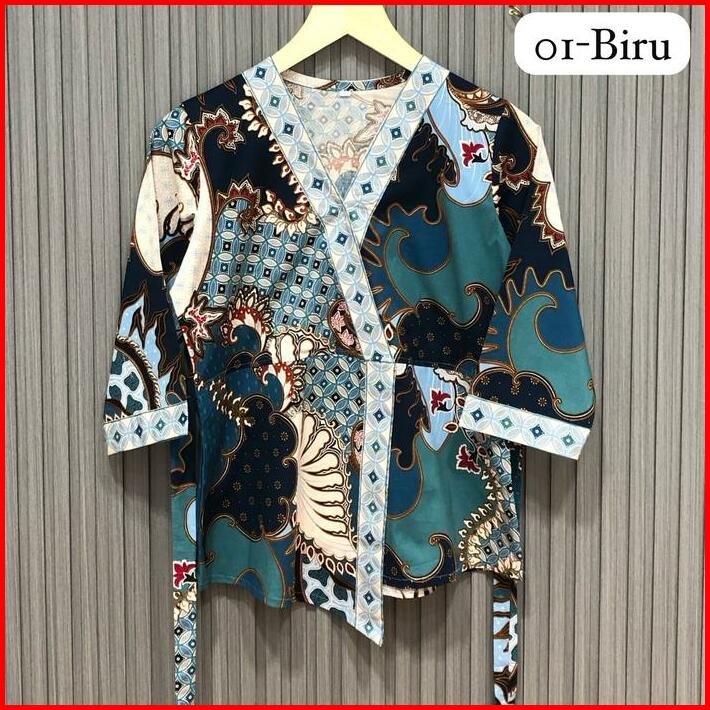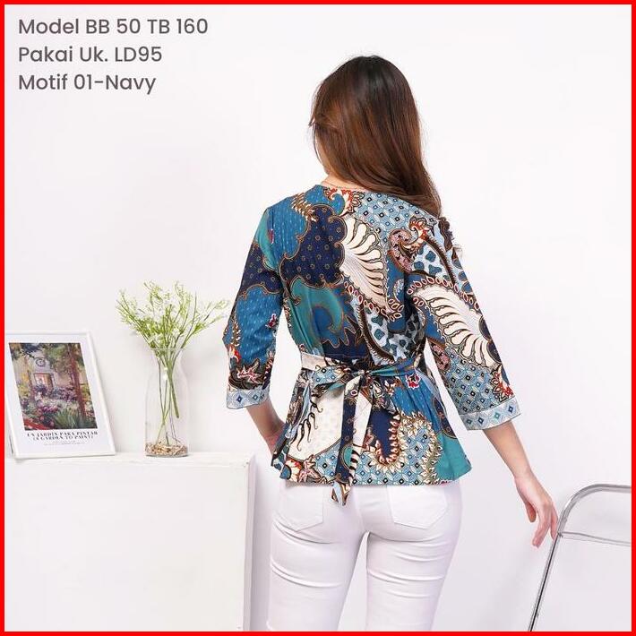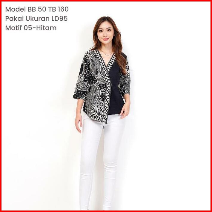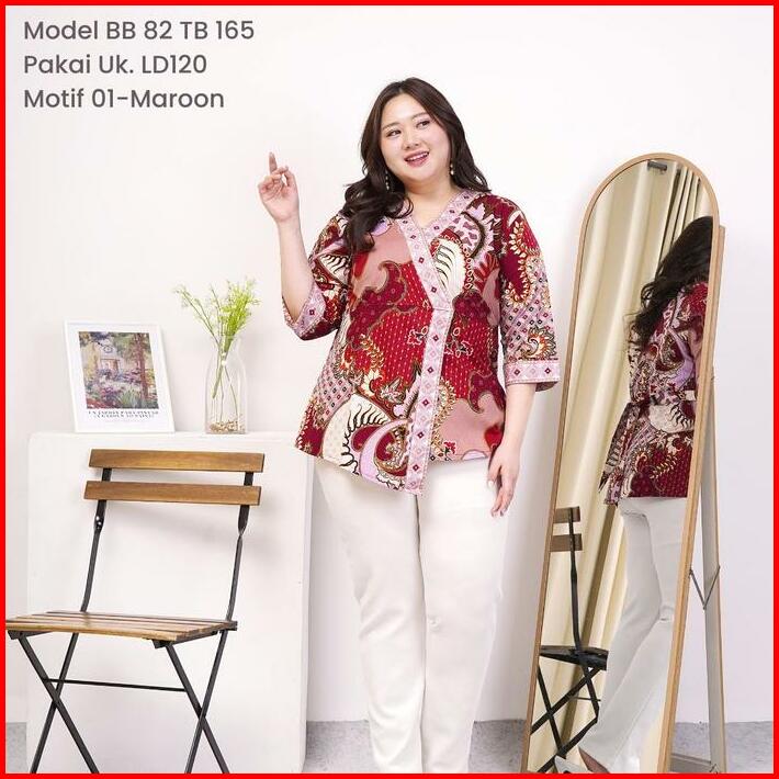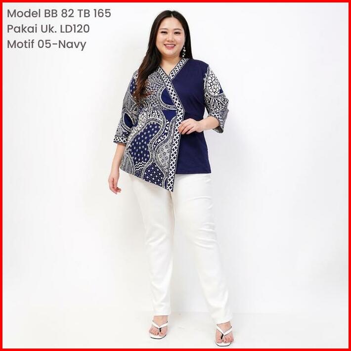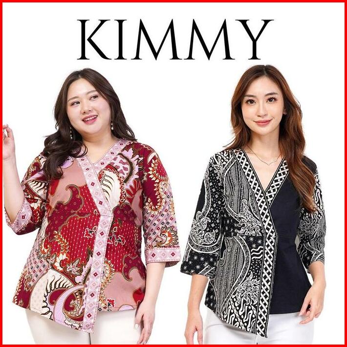 Kimmy Ld95 110 120 130 Blouse Batik Modern Wanita Lengan 3 4 Katun Stretch Premium Jumbo Bigsize Kantor