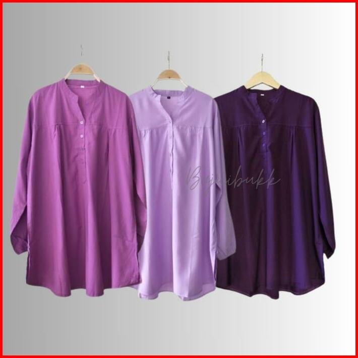 Blouse Polos Viscose Jumbo Tangan Karet Ungu Tua Nyaman Wanita Baju Katun Atasan Pendek Santai