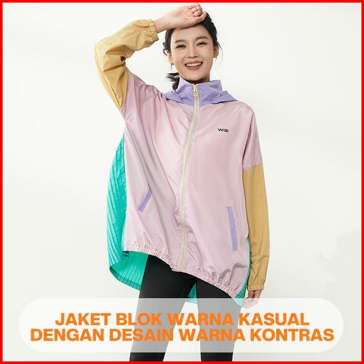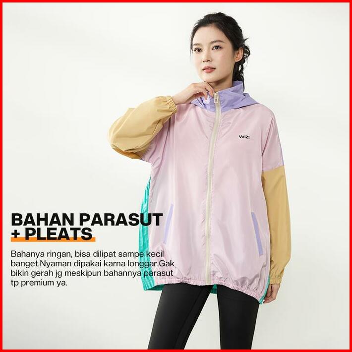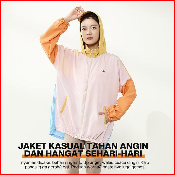 Wizi Jaket Parasut Olahraga Wanita Jaket Macaron Berwarna-warni Oversize Airy