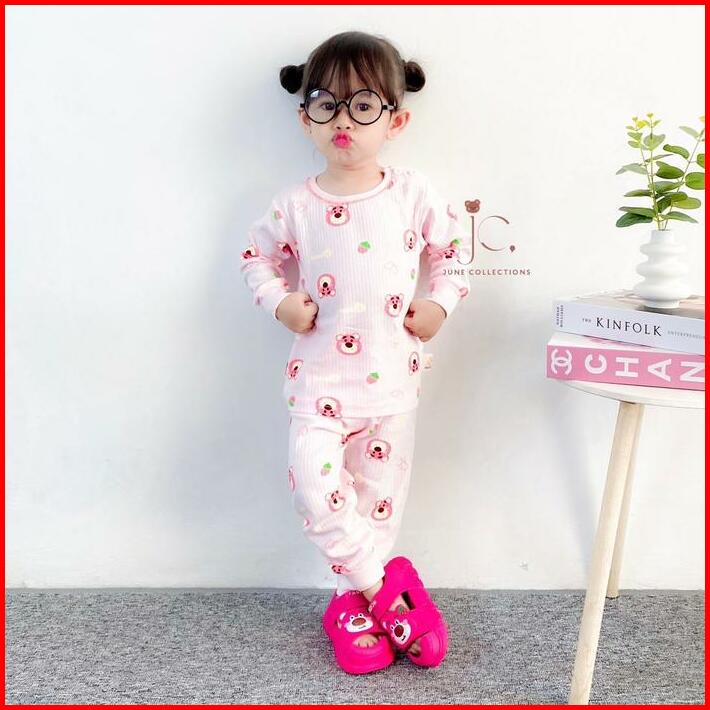 Junecollections Baju Tidur Anak Setelan Piyama Bayi Set Lengan Panjang Bahan Lembut Piyama Anak Motif Bear Beruang Dino