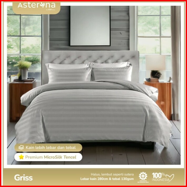 Bedcover Sprei Hotel Micro Bamboo Premium Motif Salur Abu Muda