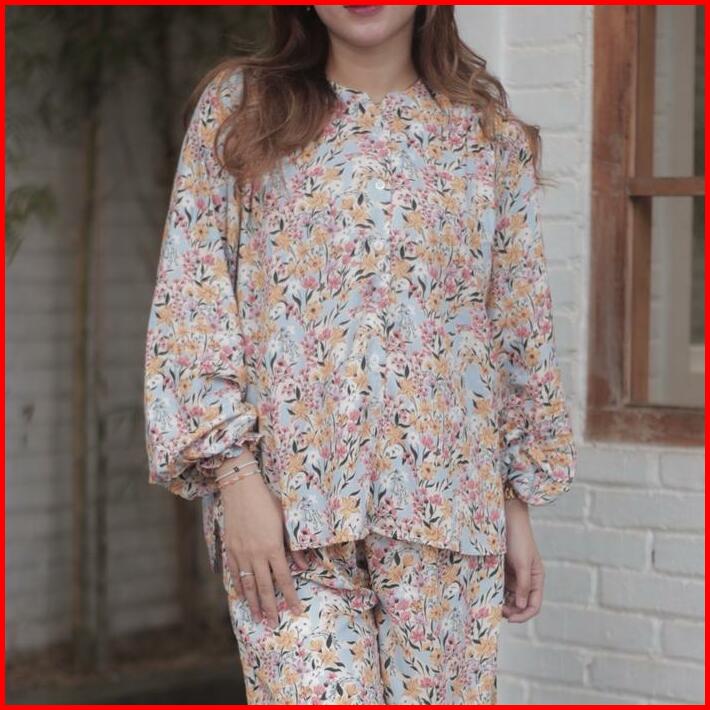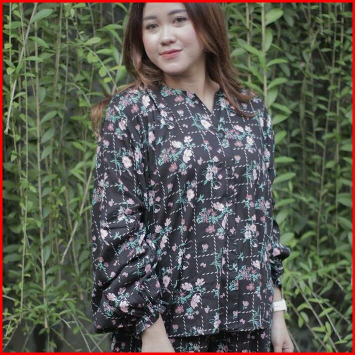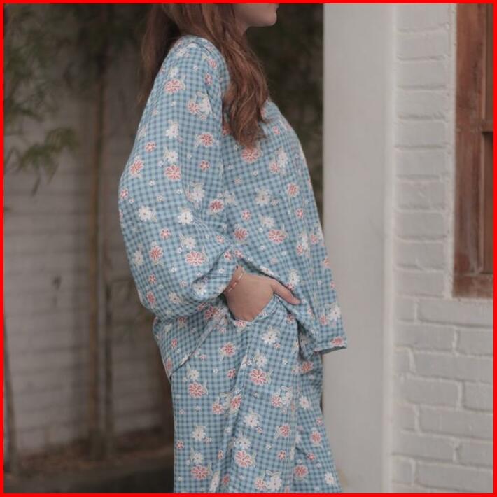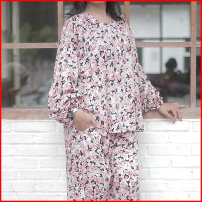 Houseofplatinum Honey Set Piyama Setelan Atasan Baju Panjang Celana Panjang Tidur Katun Rayon Motif Bumil Busui Friendly