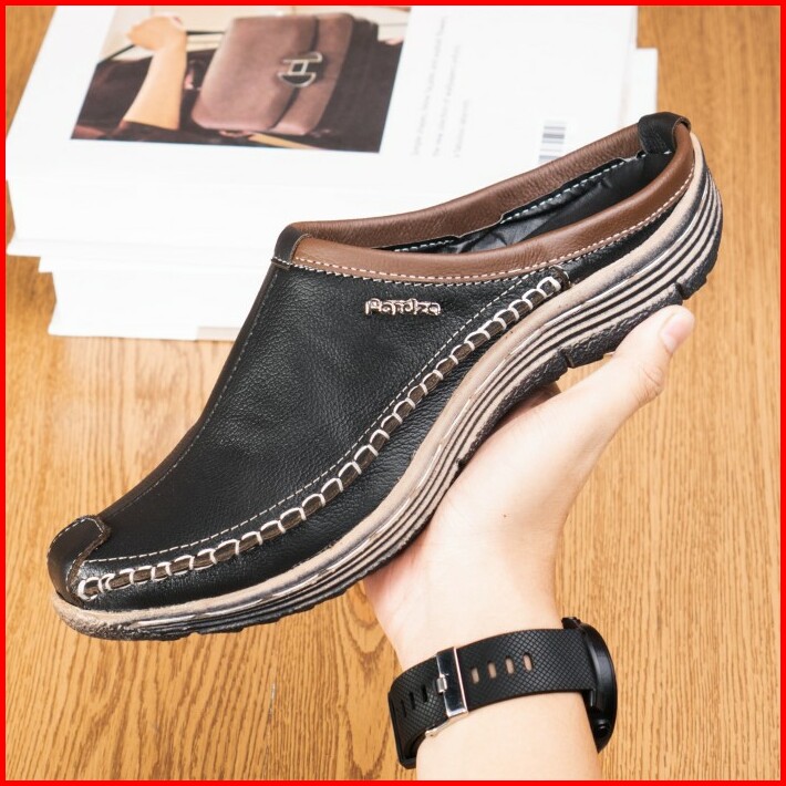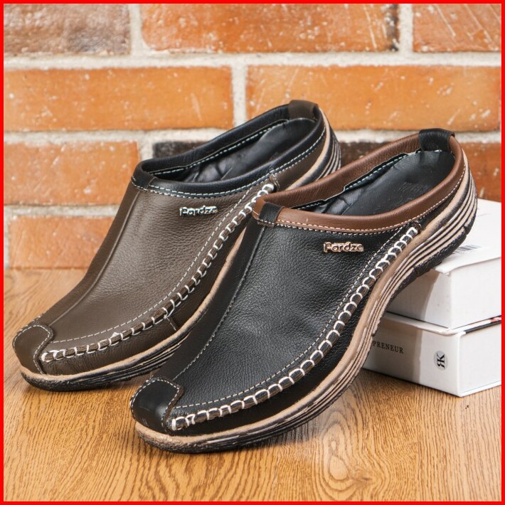 Sendal Sepatu Pria Bs01 Sepatu Sandal Bustong Slop Kulit Asli
