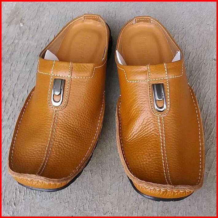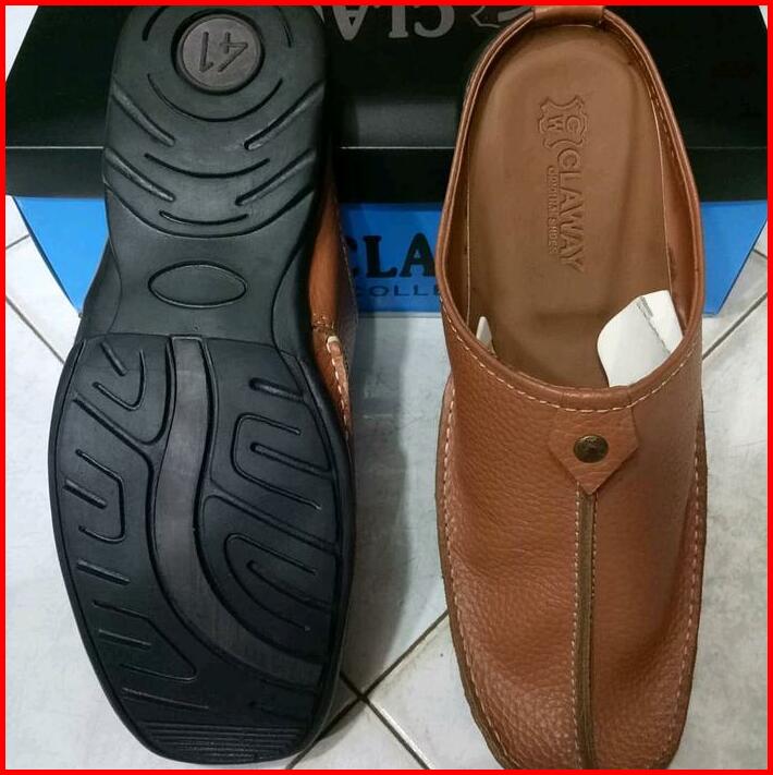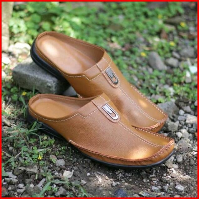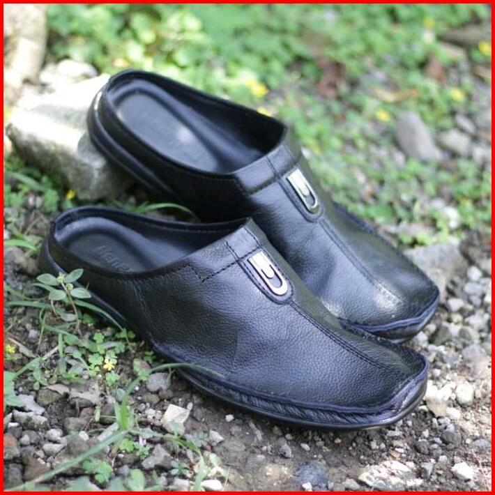 Grosir Termurah Sandal Sendal Sepatu Tutong Bustong Slop Slipon Slip On Selop Pria Cowok Kulit Sapi Terbaru Hitam Putih