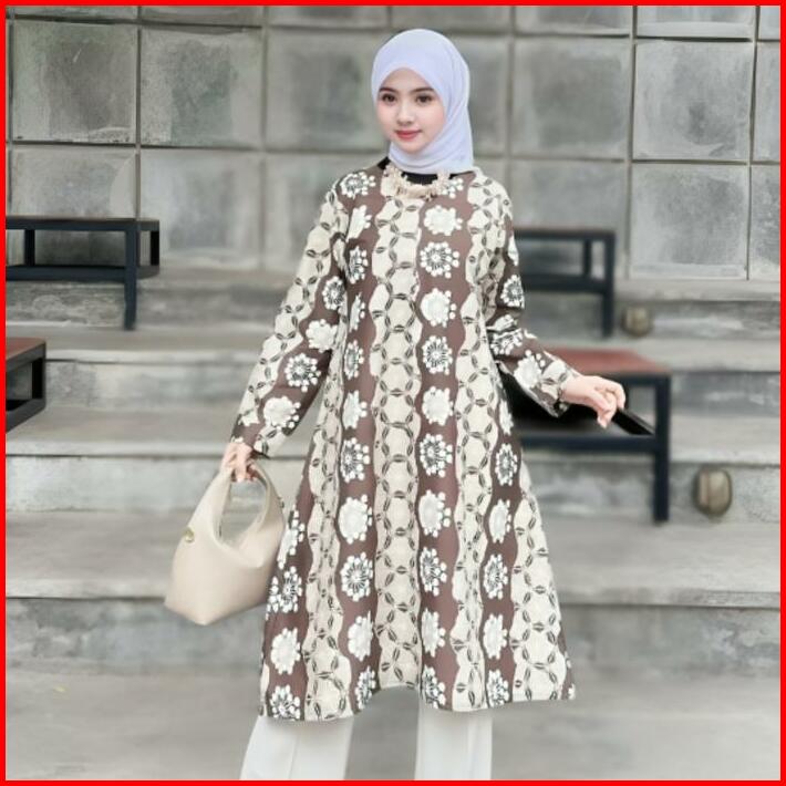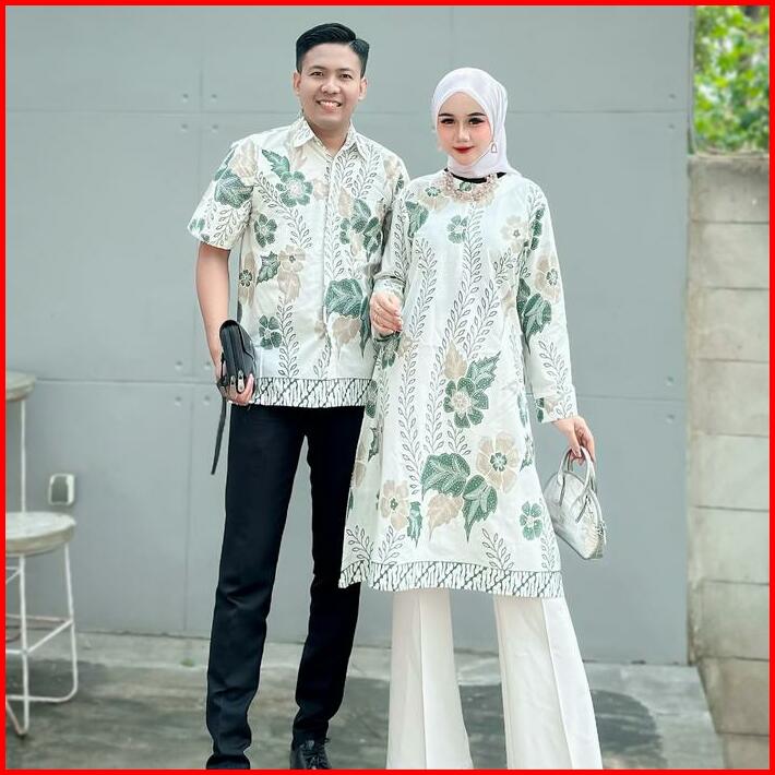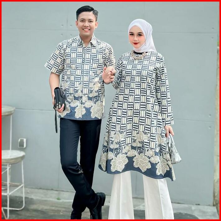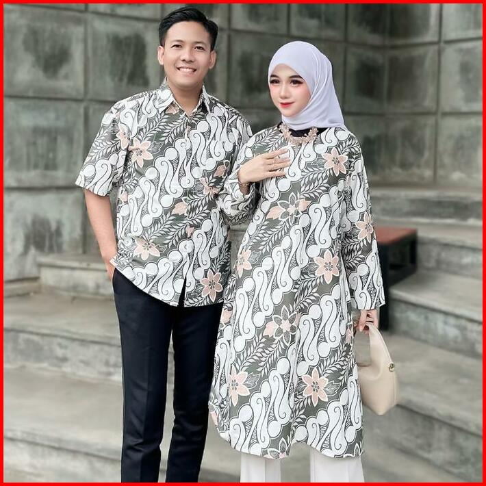 Hkmco Tunik Batik Pasangan Jumbo Atasan Couple Kemeja Baju Wanita Seragam Katun Sarimbit Keluarga Kantor Kerja Panjang M