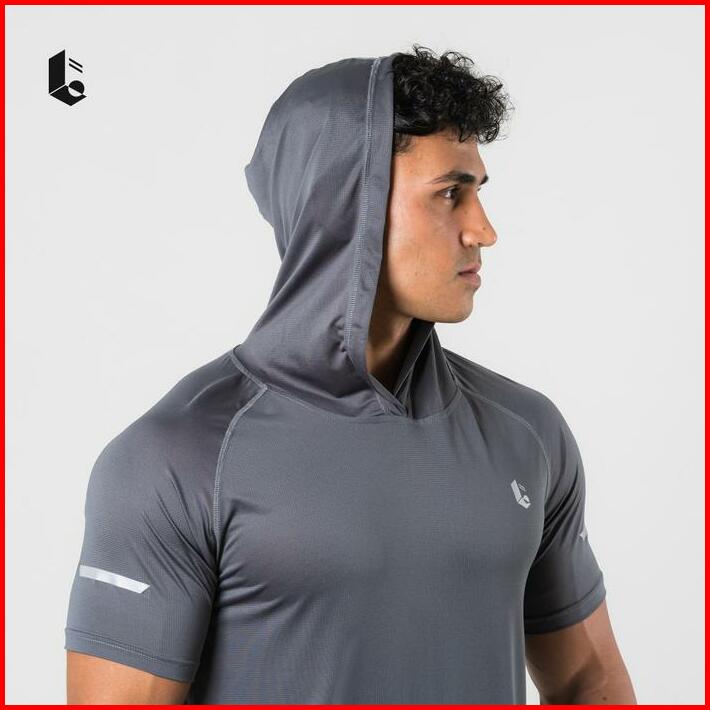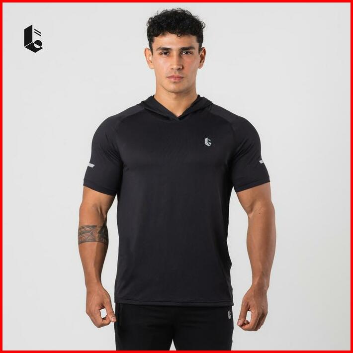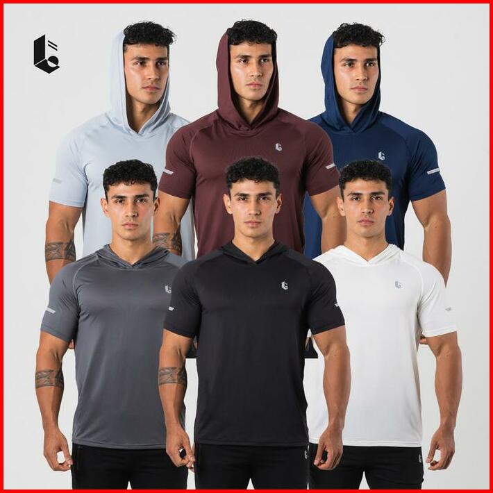Lockerwear Baju Hoodie Sport Pria Lengan Pendek Kaos Olahraga Short Sleeve Gym Running Lari Jogging Slim Quick Dry Fit