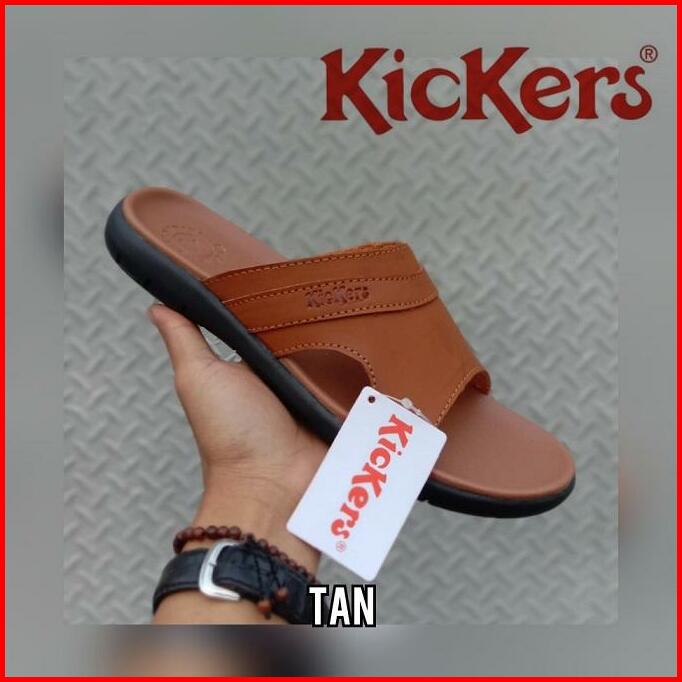 Promo Sandal Selop Pria Kickers Sendal Slop Bahan Kulit Nyaman Dipakai Anti Slip Shoes
