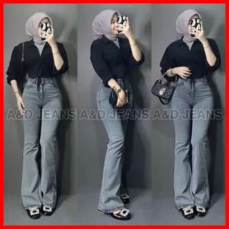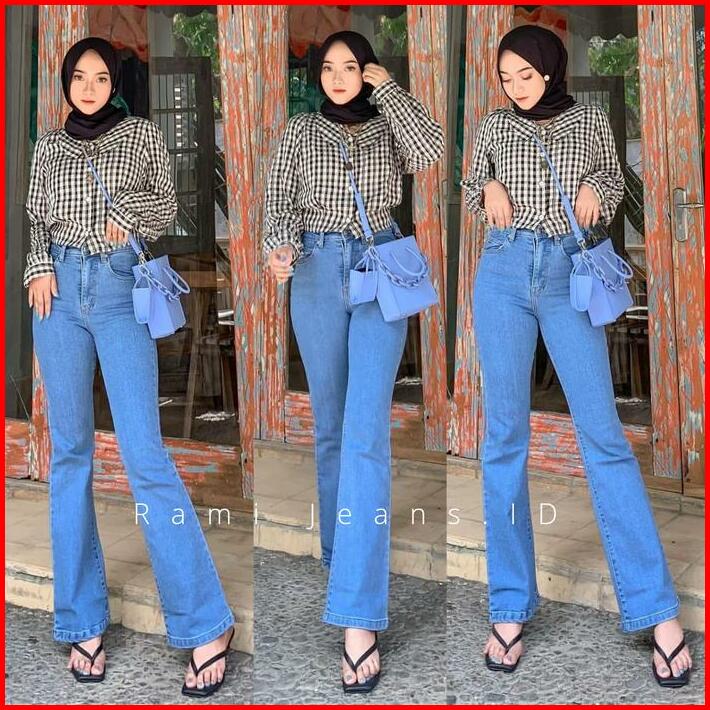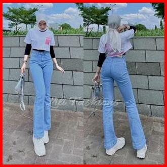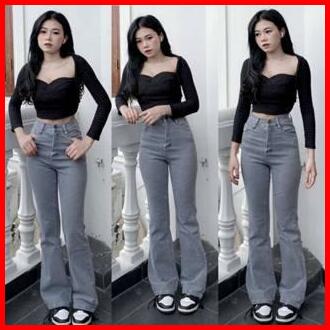 Celana Cutbray Jeans Wanita Highwaist Celana Panjang Jeans Stretch Denim