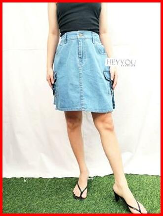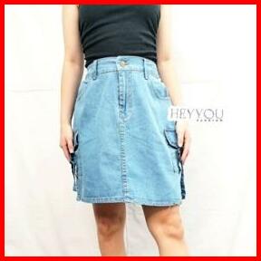 Rsks- Rok Pendek Jeans Rok Span Denim Rok Korea Rok Pendek Pinggang Karet Rok Pendek Kekian Santai Jalan Rok Wanita Kanc