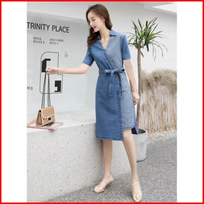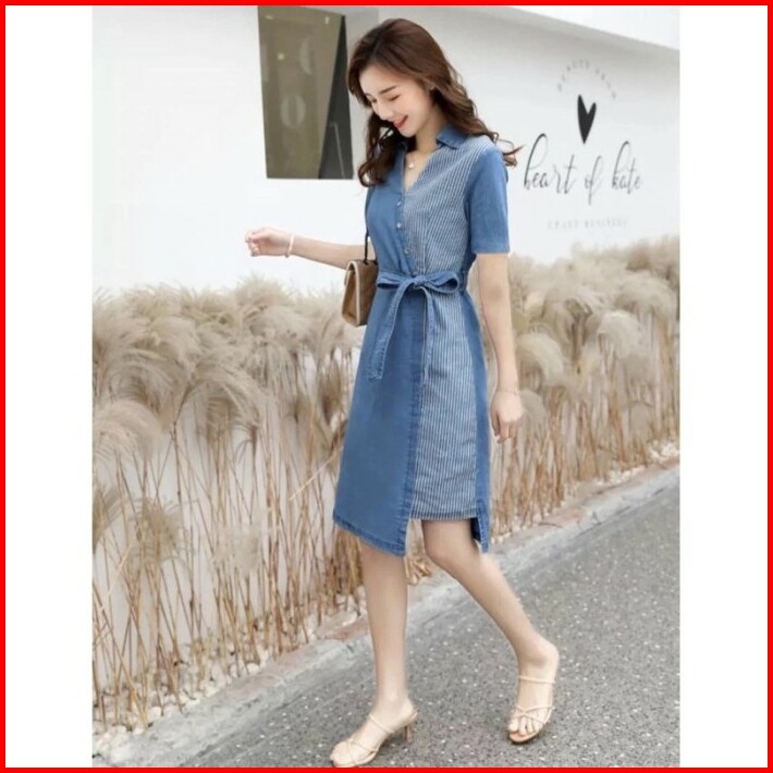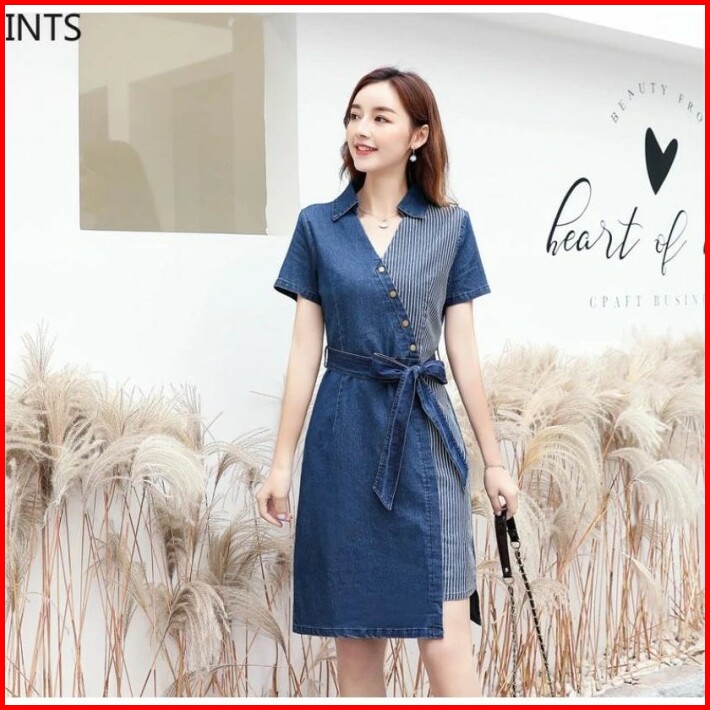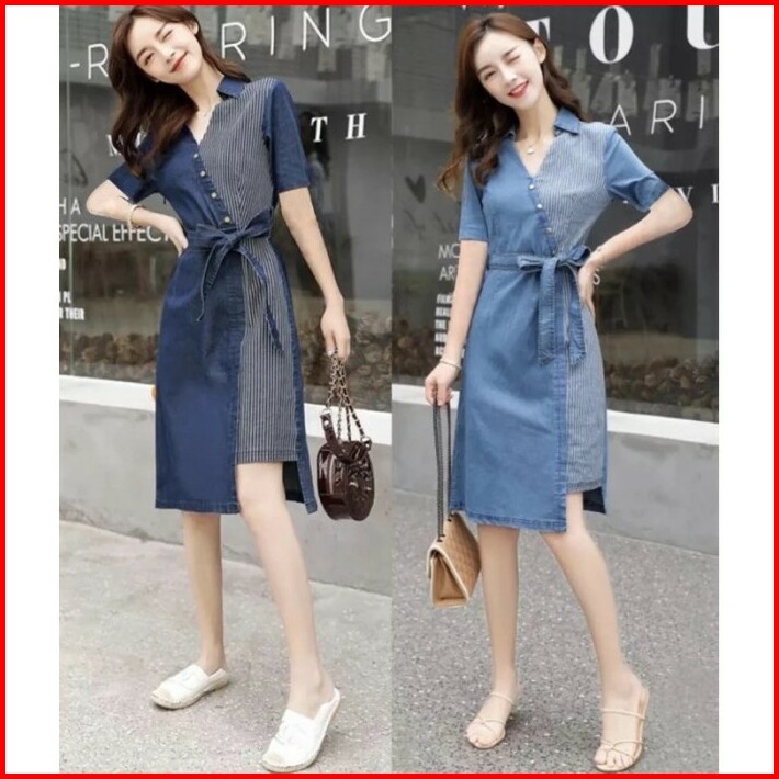 Gaun Kemeja Jeans Wanita Cantik Style Baju Dress Korea Bahan Premium