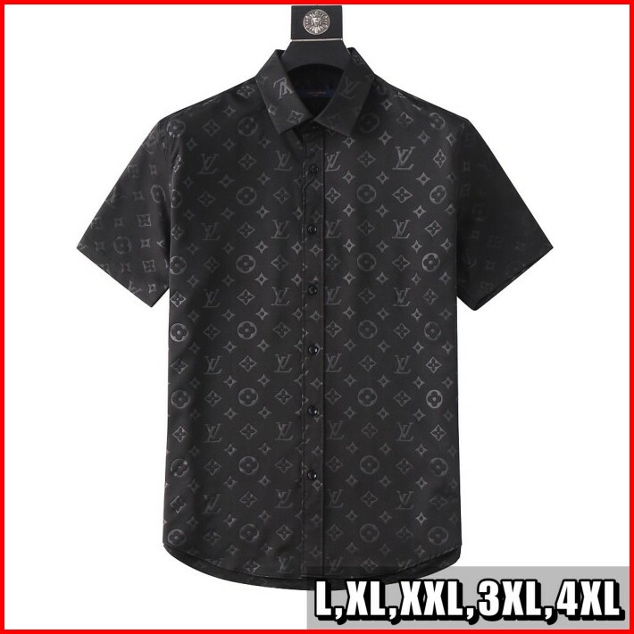 Kemeja Lengan Pendek Pria Kemeja Branded Mirror Vip Black Monogram