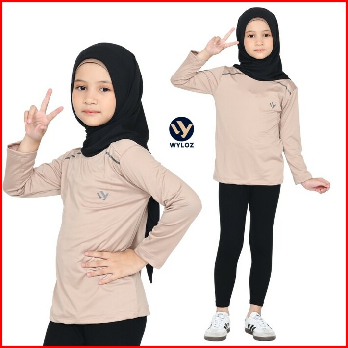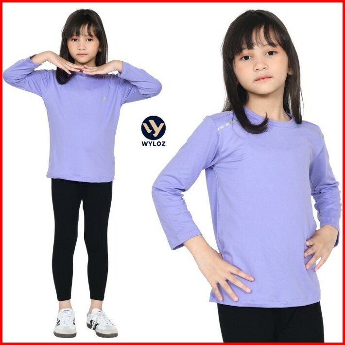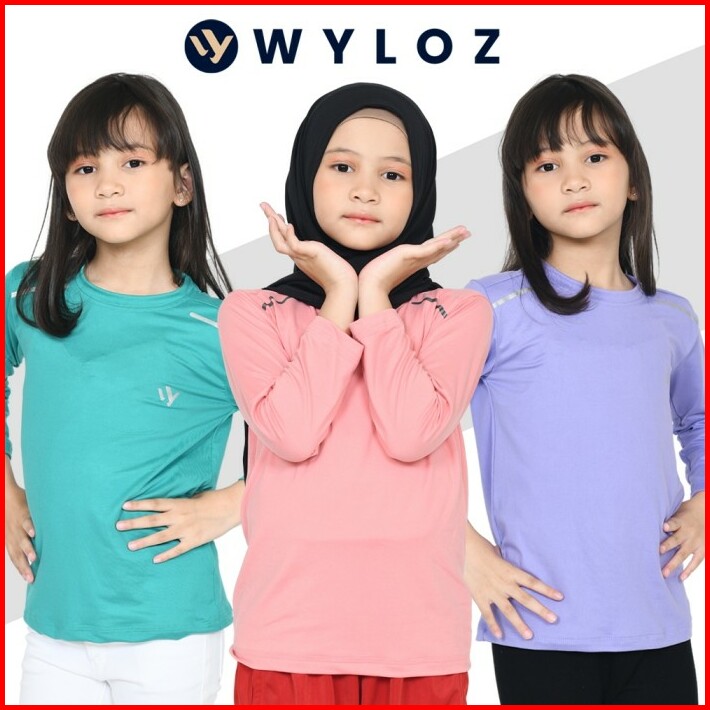 Wyloz Baju Kaos Olahraga Anak Perempuan Dry Fit Lengan Tangan Panjang Jersey Lari Sport Anak Cewek