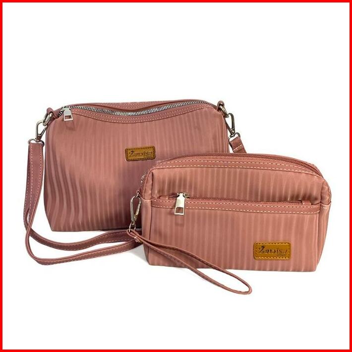 1 Paket Isi 2pcs Tas Selempang Wanita Multifungsi Dan Dompet Wanita Clutch By Zanisa