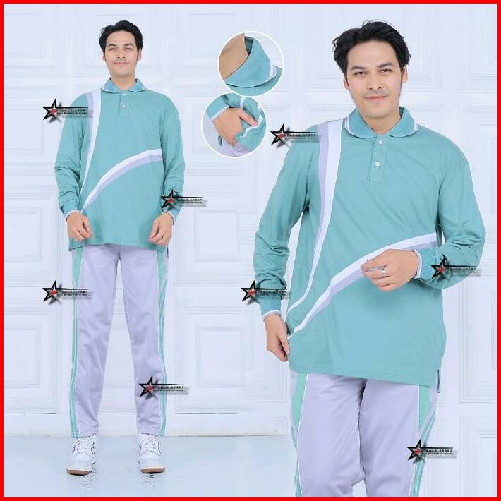 Setelan Baju Olahraga Senam Lengan Panjang Pria Setelan Kaos Training Olahraga Seragam Olahraga Pria Wanita Set Celana S