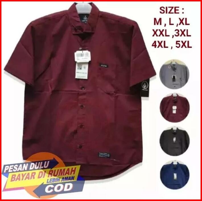 Kemeja Polos Pendek Super Jumbo 4xl 5xl 6xl Warna Hitam Pas Pink Kain Lembut Kancing Pria