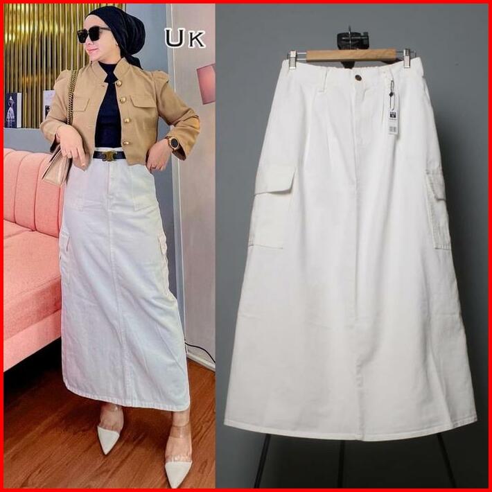 Rok Cargo Jeans Wash Wanita Polos Putih Viral Import Bkk Rok Saku Kanan Kiri Polos Warna Putih Viral Import Rok Payung W