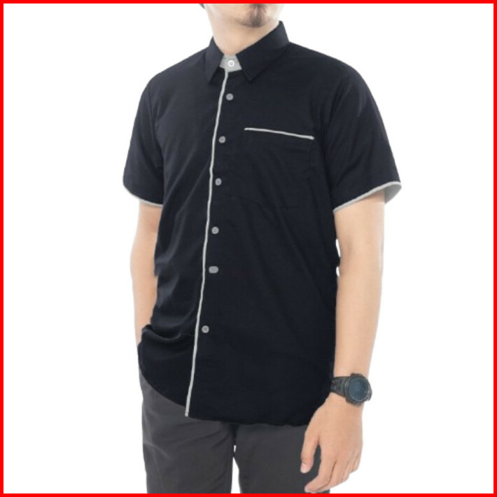 Kemeja Lengan Pendek Pria Dewasa Zubair Hitam Drill Kemeja Kantor