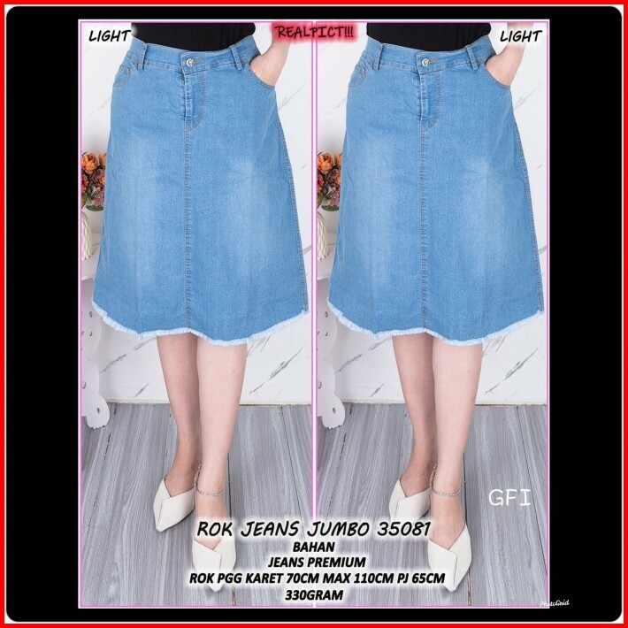 Gfi Rok Wanita Jeans Denim Belakang Karet Selutut Lpmax 110cm Pj65cm