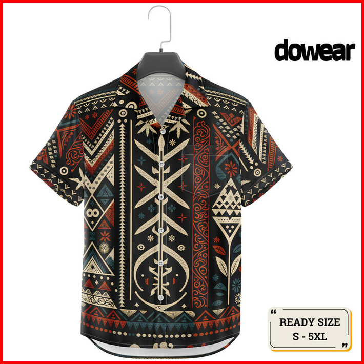 Dowear Baju Kemeja Santai Jumbo Pria Wanita Gambar Printing Hawaiian Lengan Pendek 342 Nordic Blade