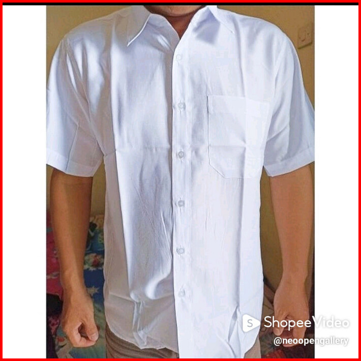 Baju Kemeja Polos Pria Reguler Putih Lengan Pendek