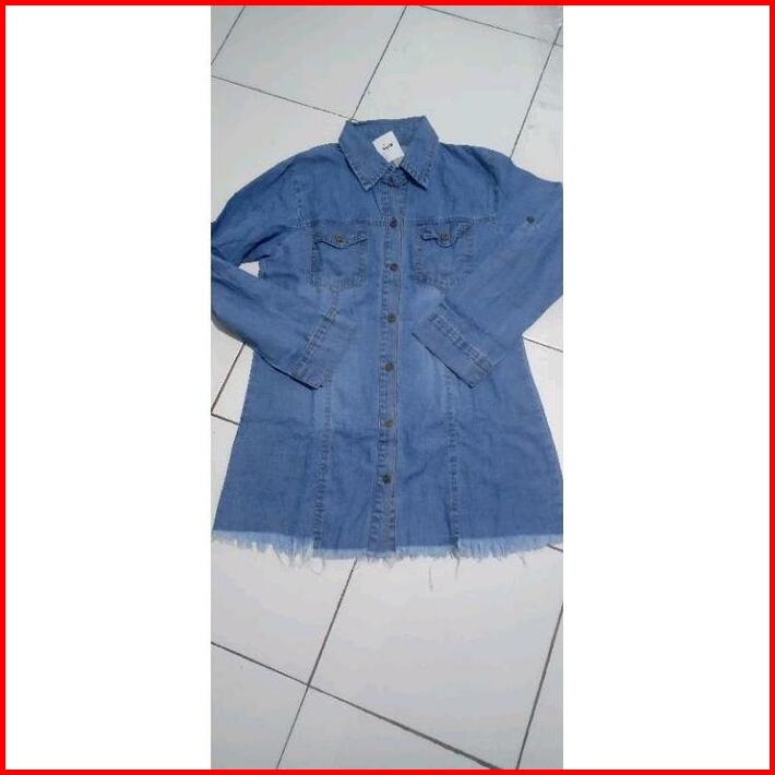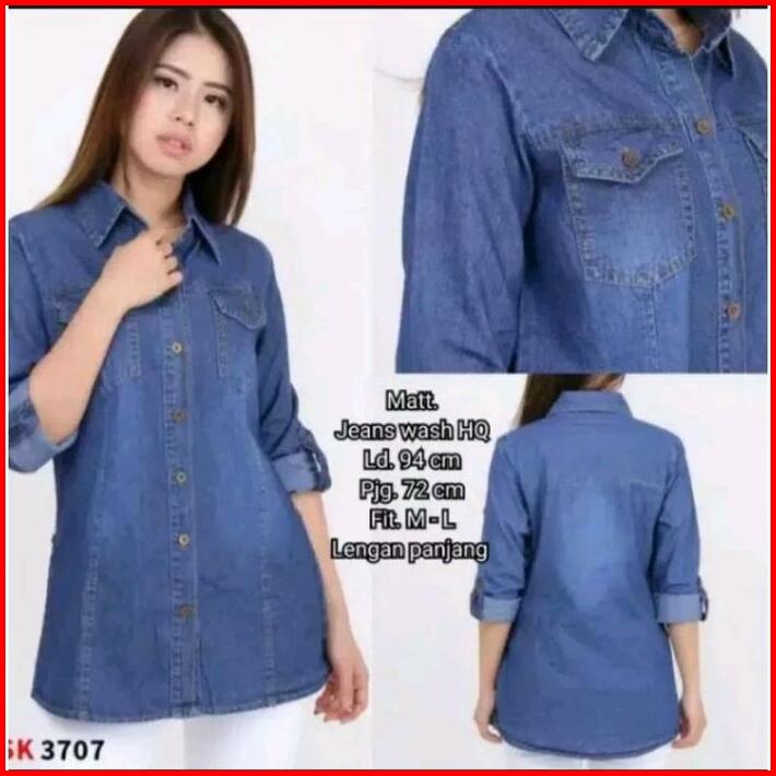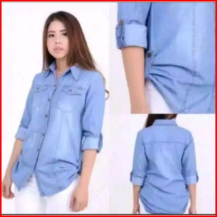 Kemeja Jeans Wanita Panjang Model Rawis Bahan Denim Kualitas Premium Terlaris Santai Santai Polos