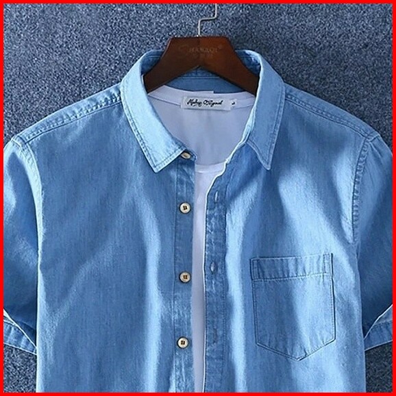 Kemeja Jeans Polos Pria Lengan Pendek Kemeja Polos Bozz Jeans