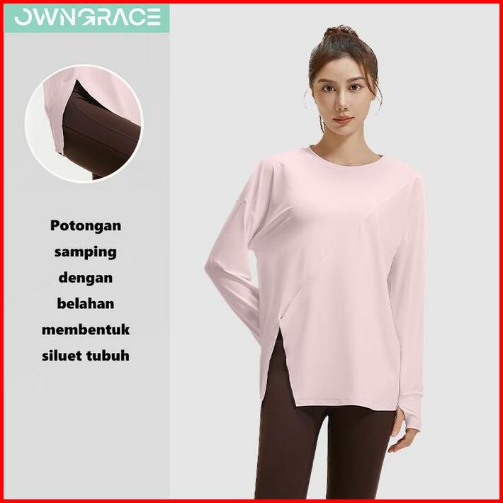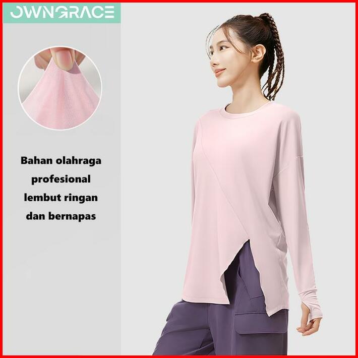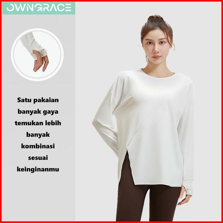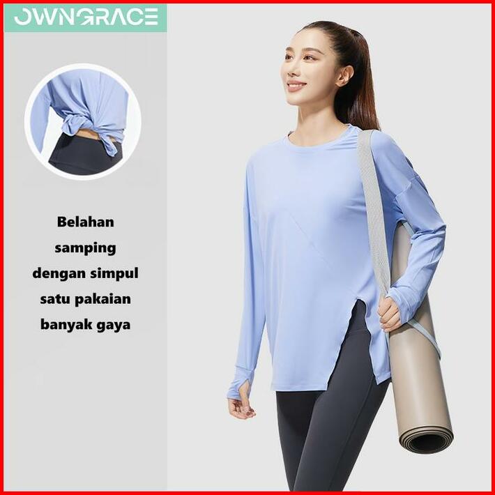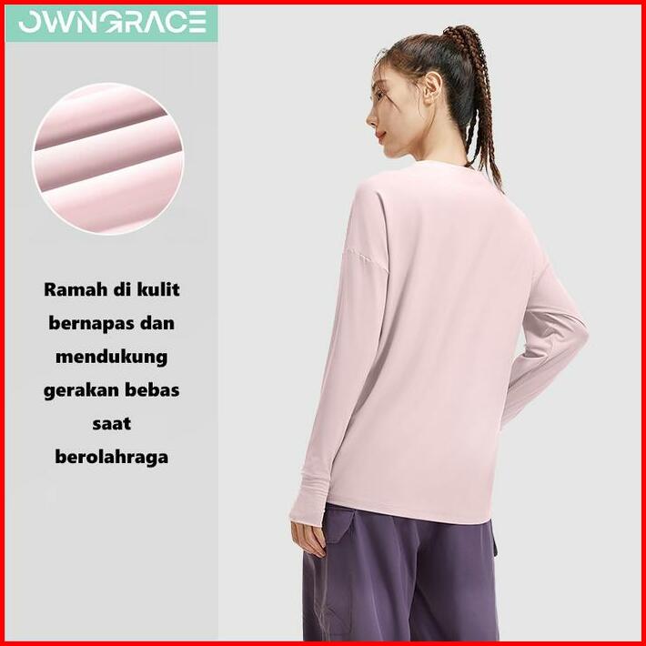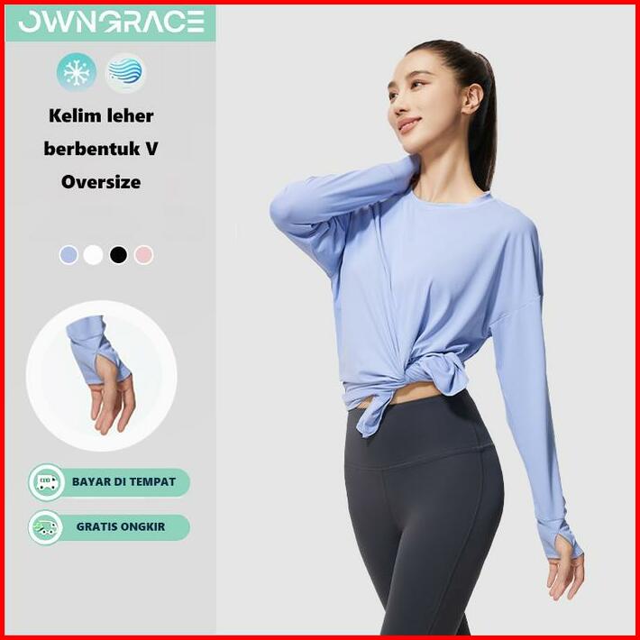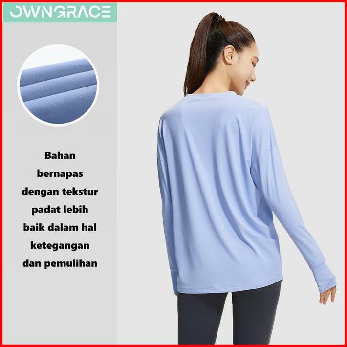 Owngrace-baju Atasan Olahraga Wanita Lengan Panjang Oversize Hijab Sport Kaos Long Sleeve T-shirt Yoga Tenis