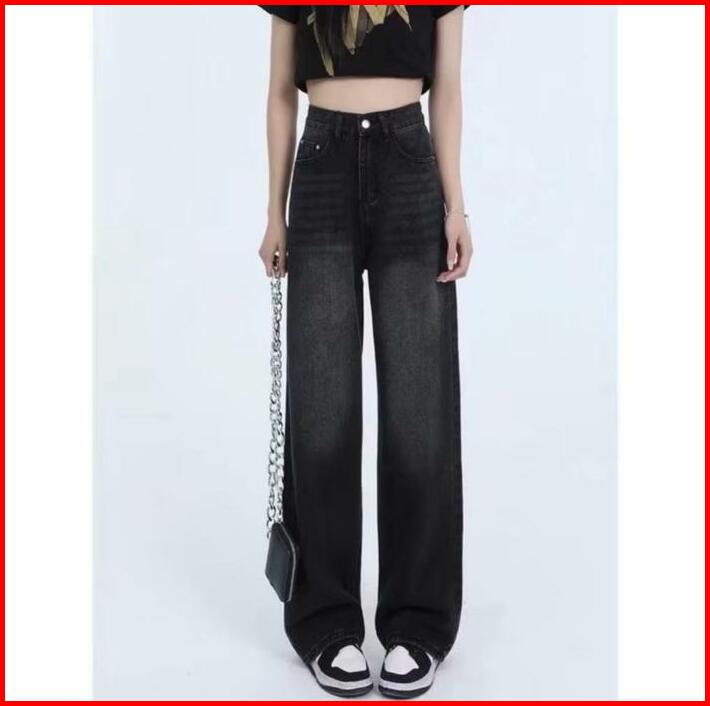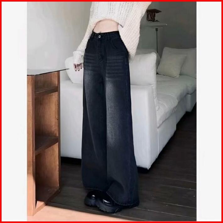 Highwaist Kulot Loose Jeans Celana Baggy Pants Wanita Black Retro