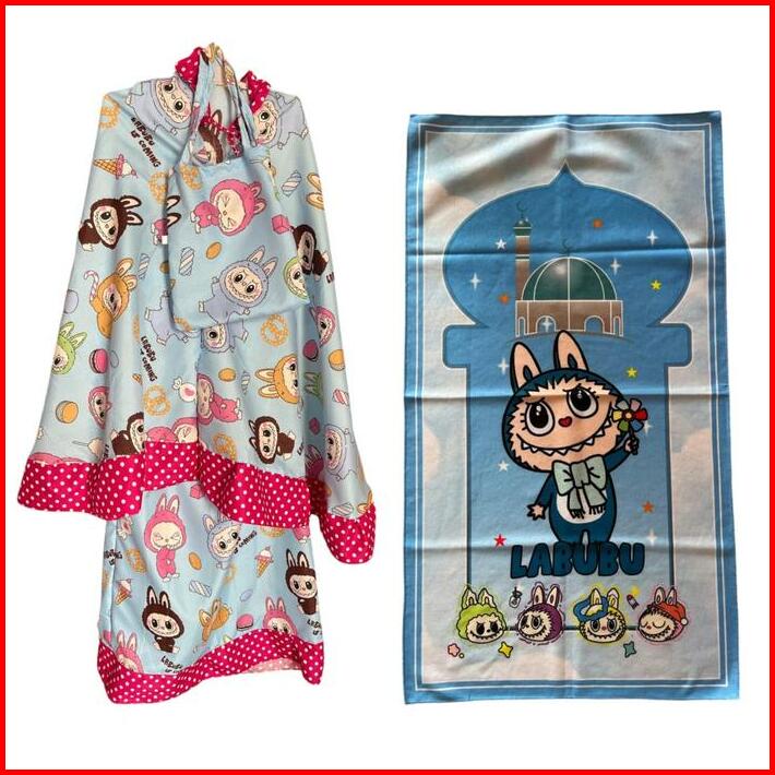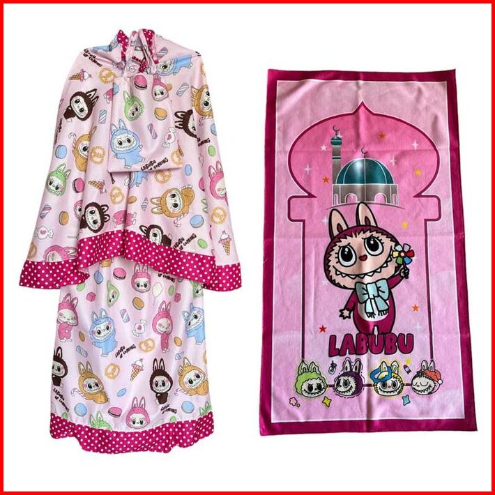 Mukena Dan Sejadah Anak Usia 2-10 Tahun Mukena Labubu Kuromi Custom Nama Set Mukena Anak Terbaru Motif Muslim Sajadah Ny