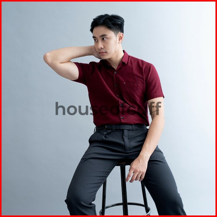 Kemeja Lengan Pendek Pria Formal Slim Fit Marun Houseofcuff