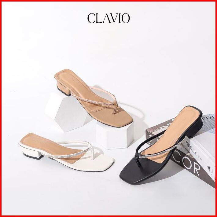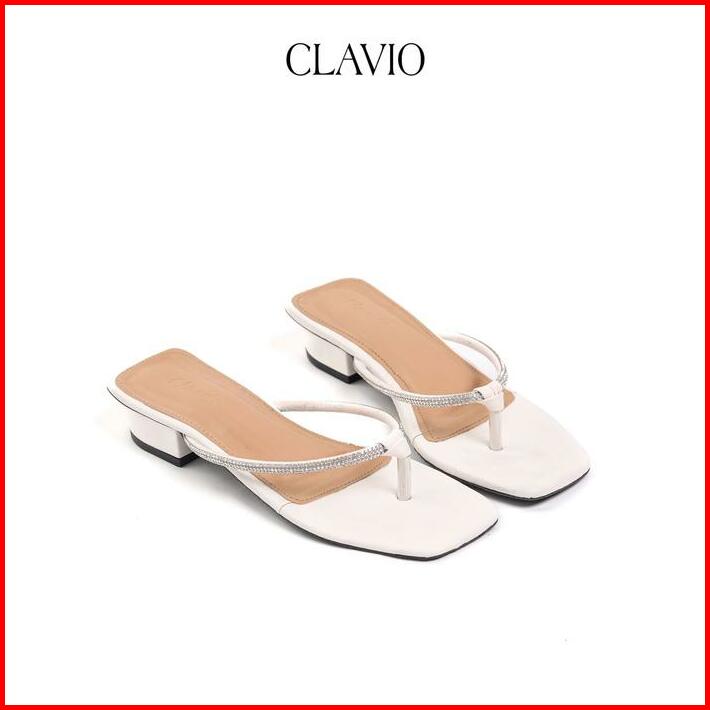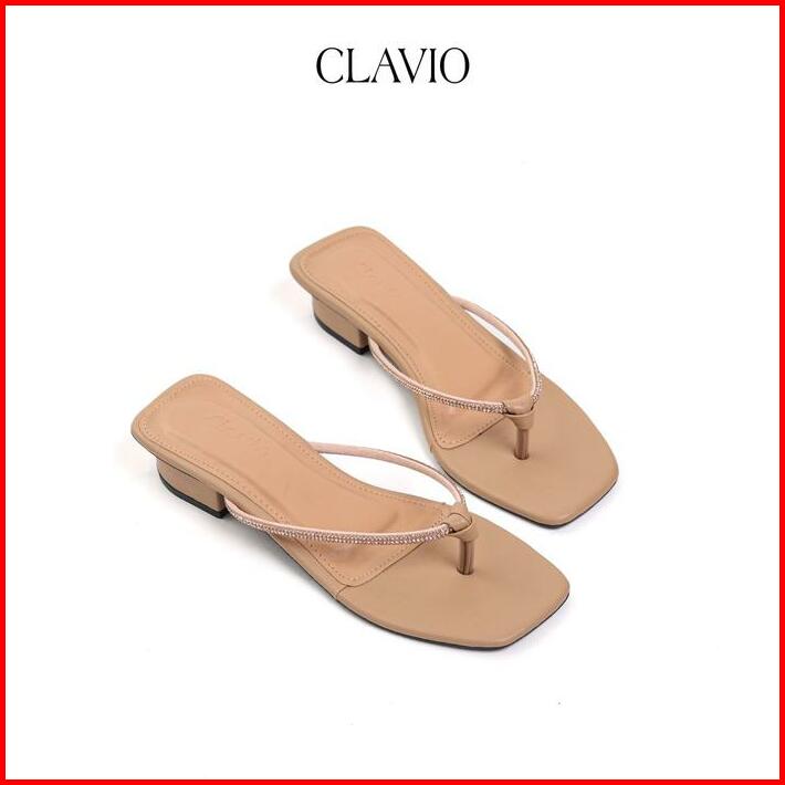 Clavio Arsy Sandal Heels Wanita Jepit Tali Mutiara Hak Tinggi 3cm Sandal Kondangan Terbaru Anti Licin Sendal