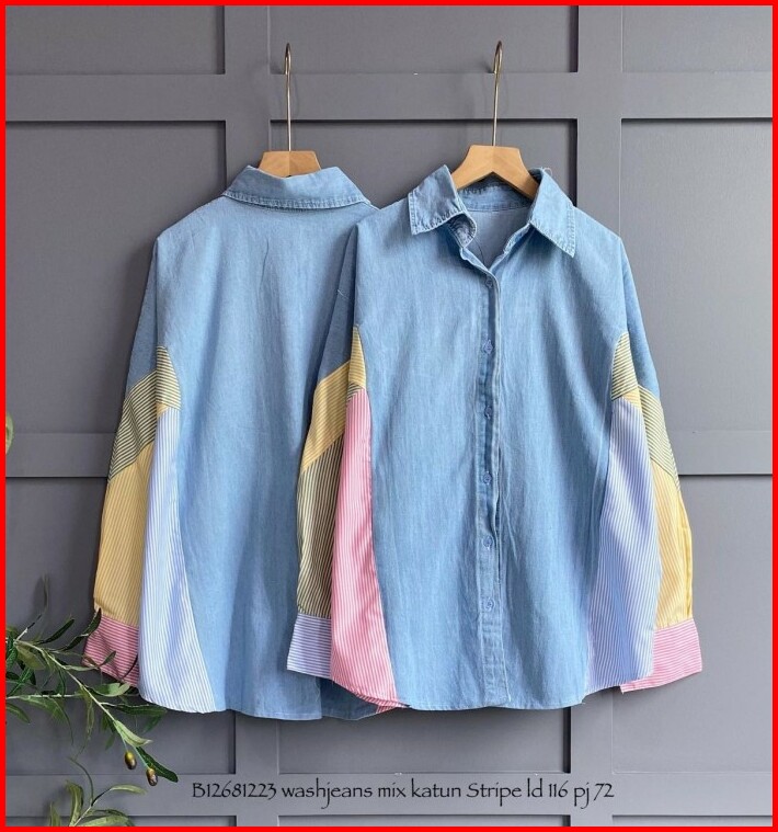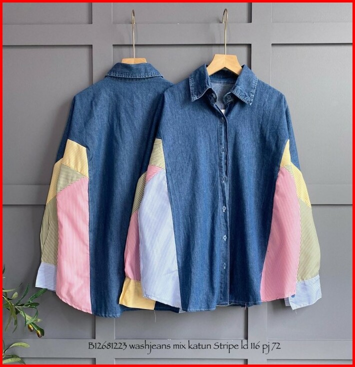 Baju Kemeja Wash Jeans Premium Jumbo Wanita Fashion Atasan Cewek Terbaru Busana Wanita Pakaian Perempuan