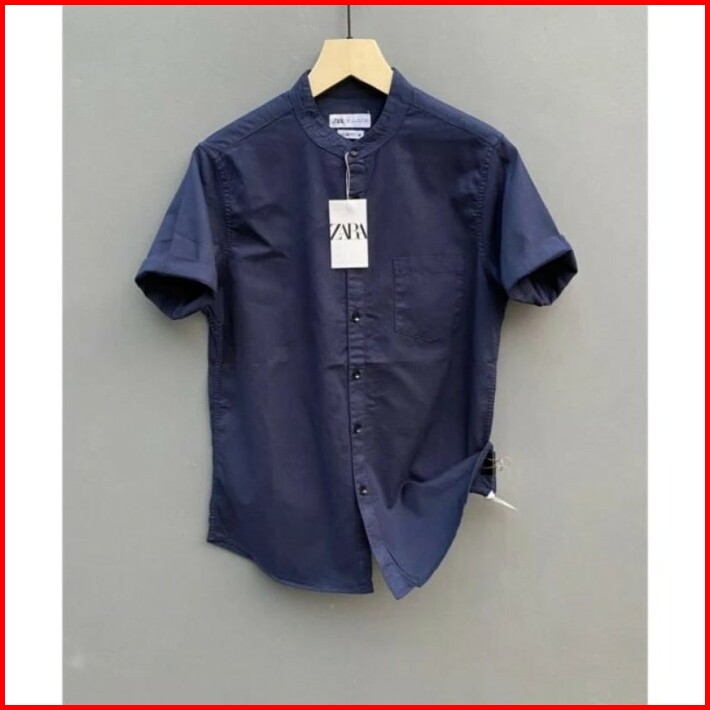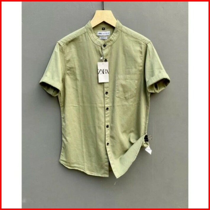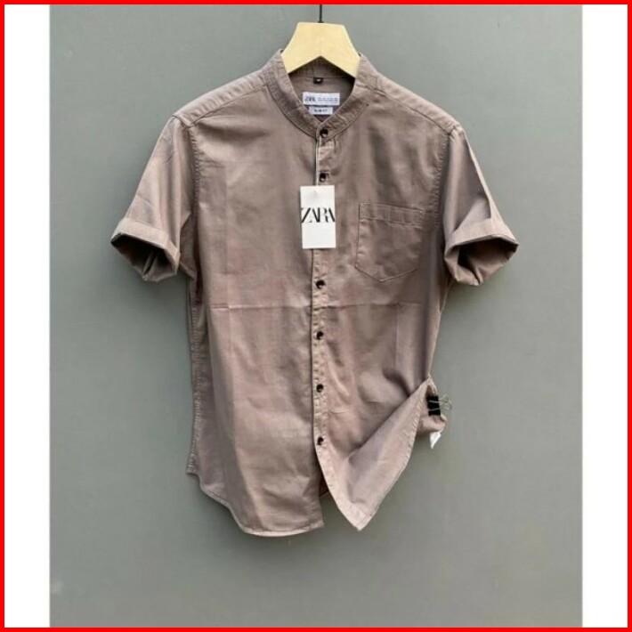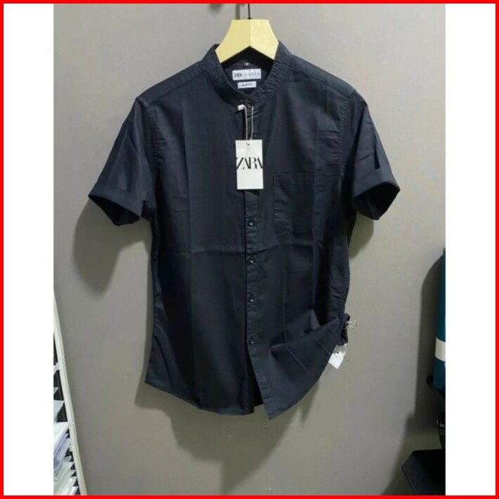 Kemeja Zara Shanghai Polos Lengan Pendek Pria Bahan Twill Katun Premium Import