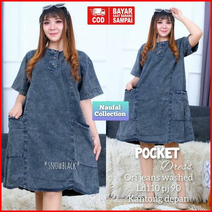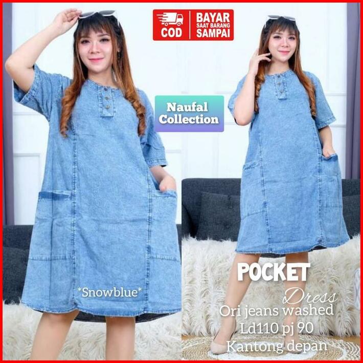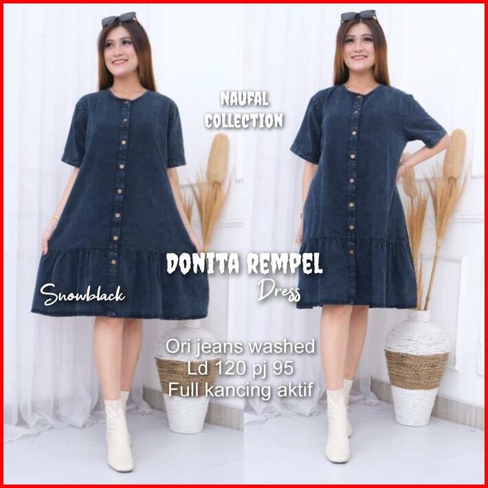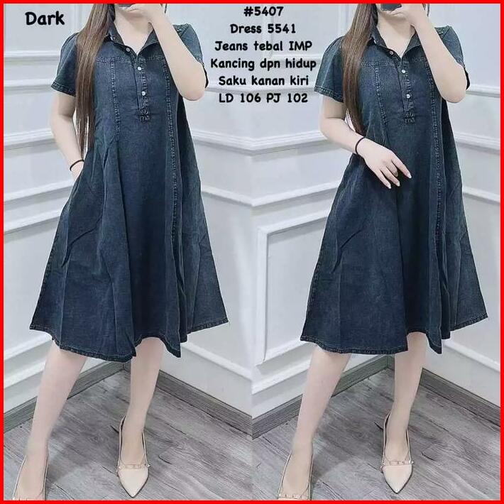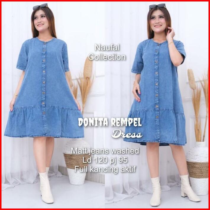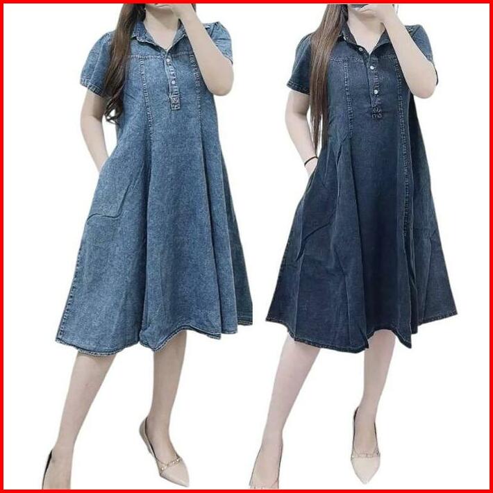 Dress Jeans Jumbo Wanita Ld 124 Midi Dress Denim A Line Home Dress Casual Lengan Pendek