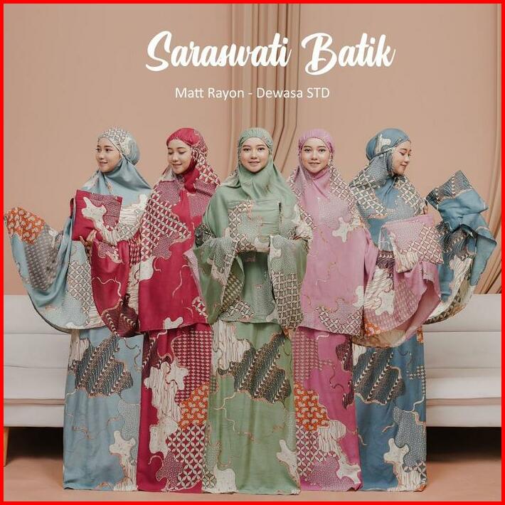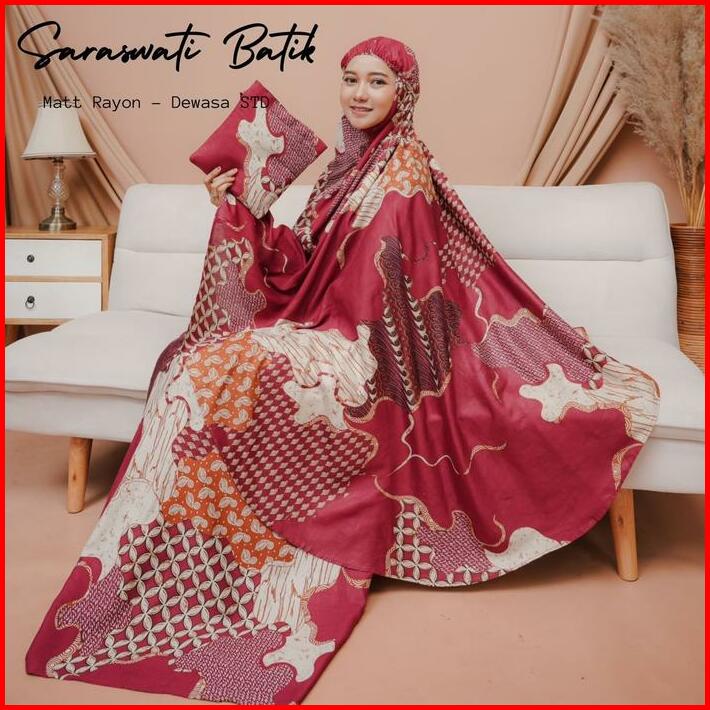 Mukena Batik Dewasa Rayon Bali Saraswati Standard Atasan Bawahan Katun Panjang
