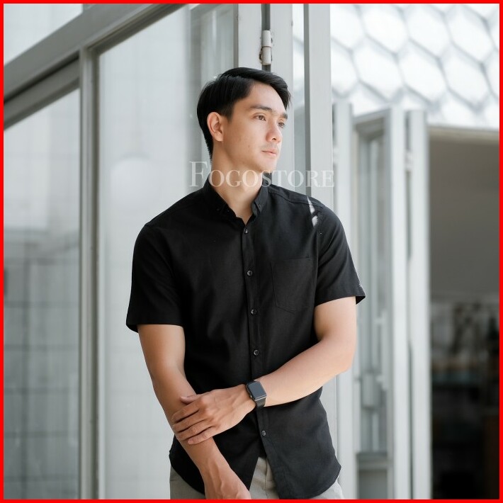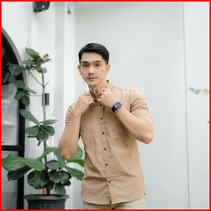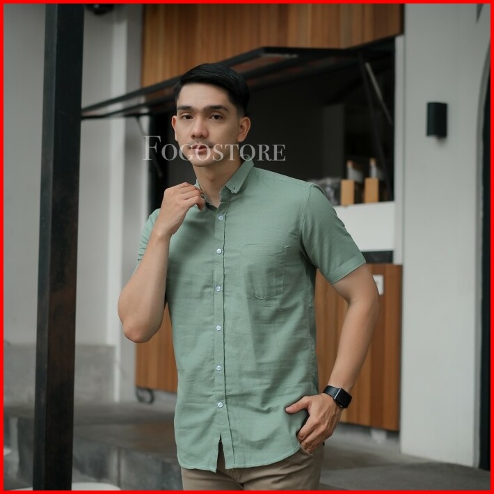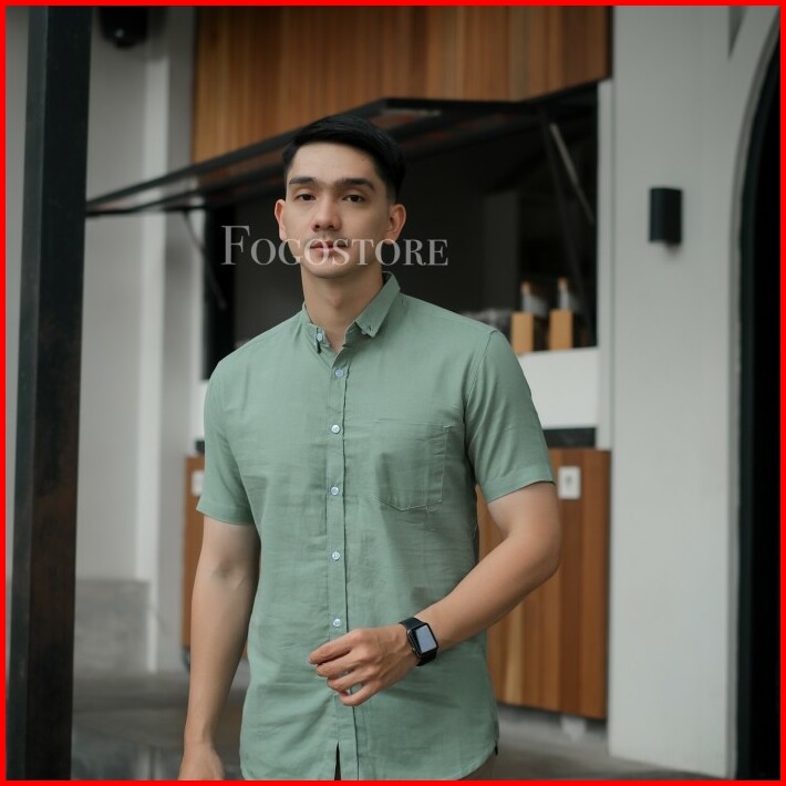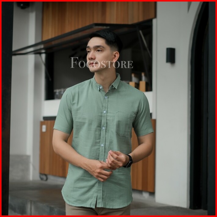 Kemeja Polos Pria Lengan Pendek Hijau Sage