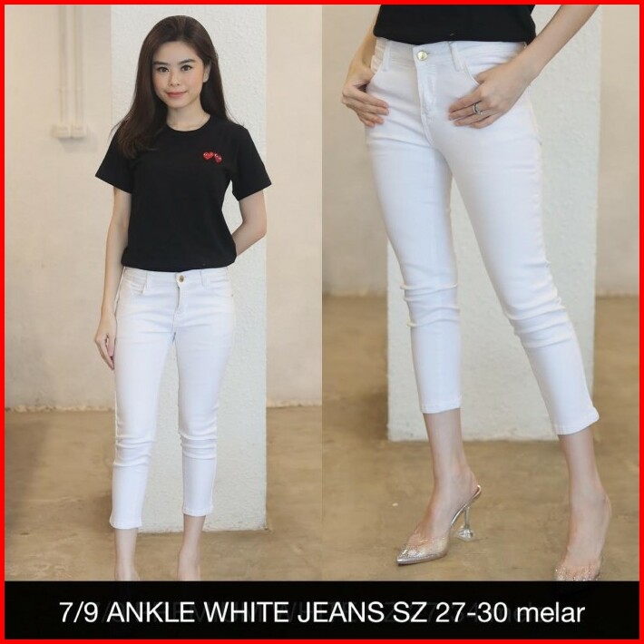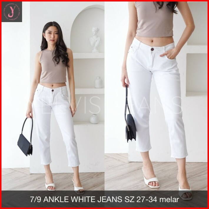 Celana Jeans Wanita 7 9 Premium White Putih Skinny Stretch Polos Big