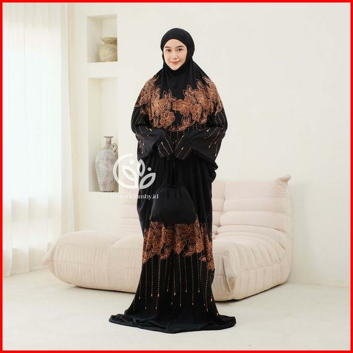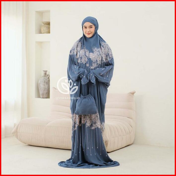 Mukena Terusan Lajuran Nabawi Batik Rayon Super Jumbo Atasan Bawahan Lembut Nyaman
