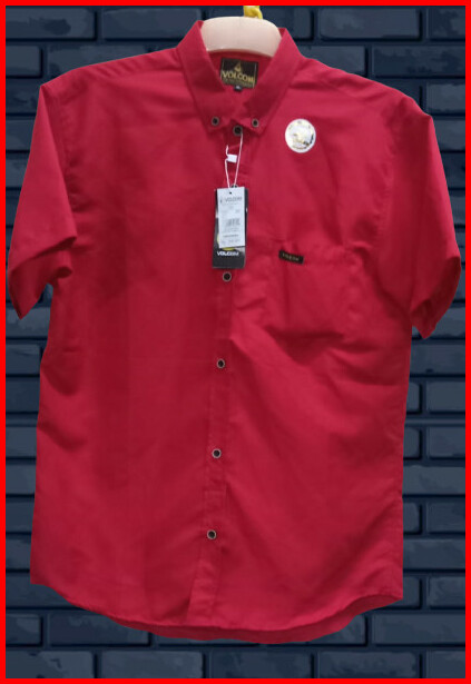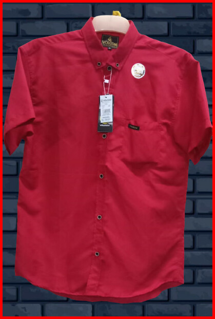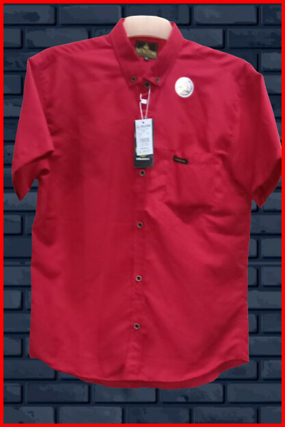 Kemeja Pendek Merah Cabe M L Xl Kemeja Pria Lengan Pendek Kemeja