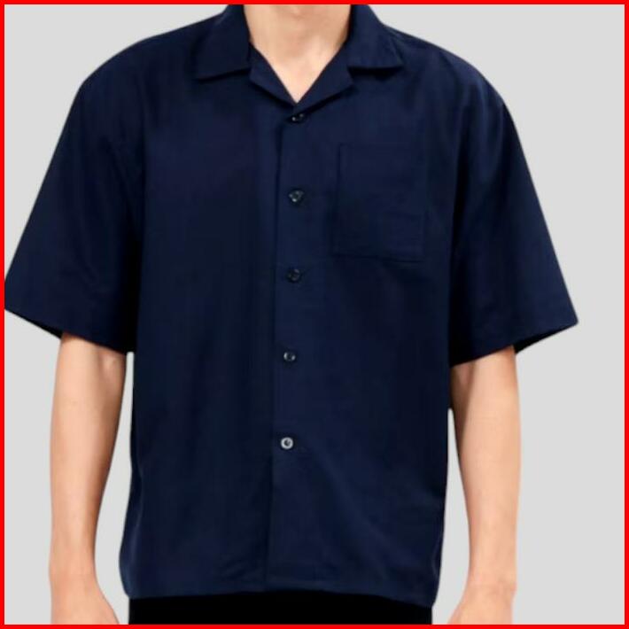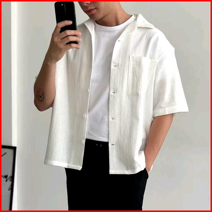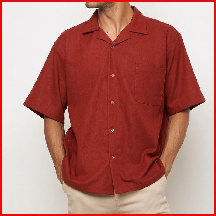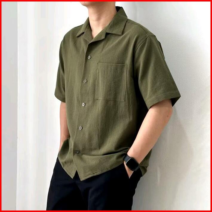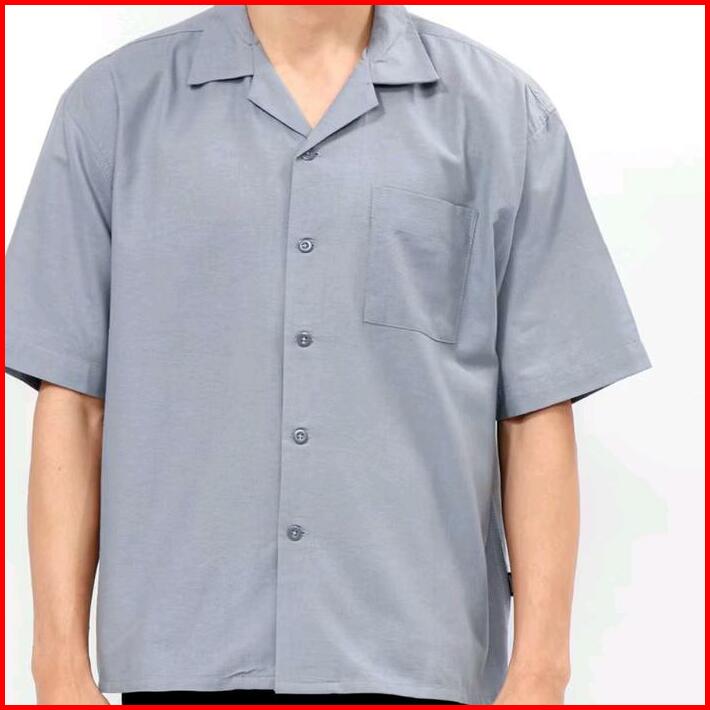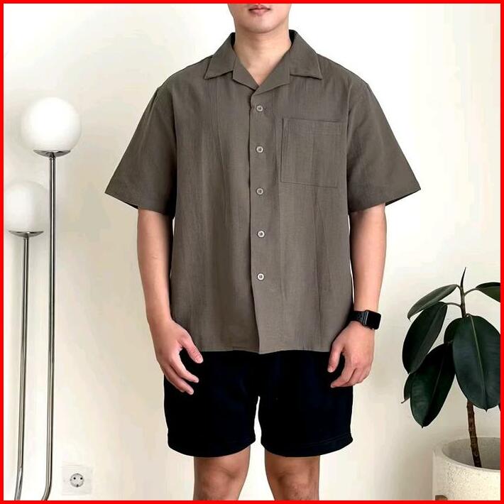 Reinaclub Cuban Bowling Boxy Oversized Linen Shirt Kemeja Linen Bowling Polos Pria Kerah Terbuka Lengan Pendek 81