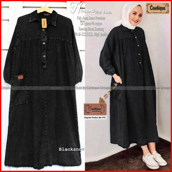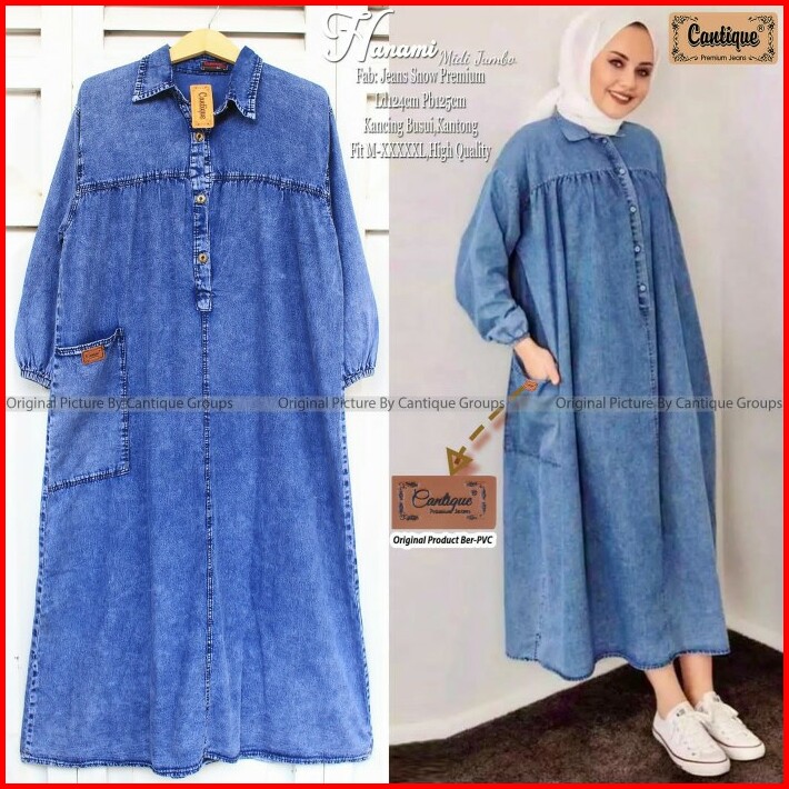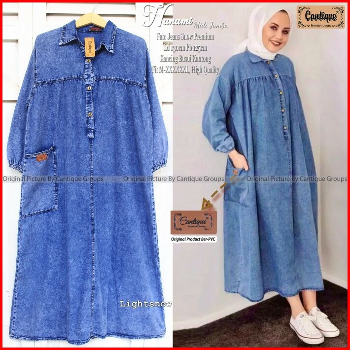 New Hanami Midi Dress Wanita Jeans Wash Premium Ld 124cm Jumbo Modis
