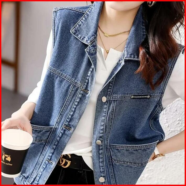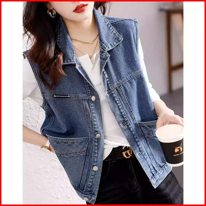 Ready Stock Dan Vest Rompi Jeans Korea Import Dark Snow Wanita Cewek Big Size Outer Fashion Wanita Cewek