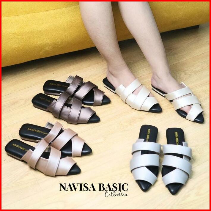 Mules Heels Wanita Hak 2 Cm Flatshoes Wanita Sepatu Flat Super Empuk Navisa Basic Collection Damelia Vivi Nici Clavio La