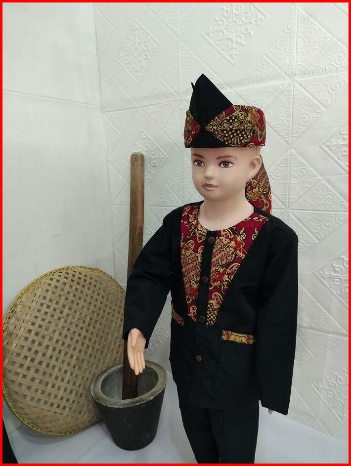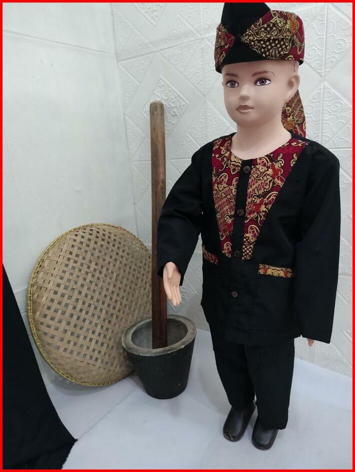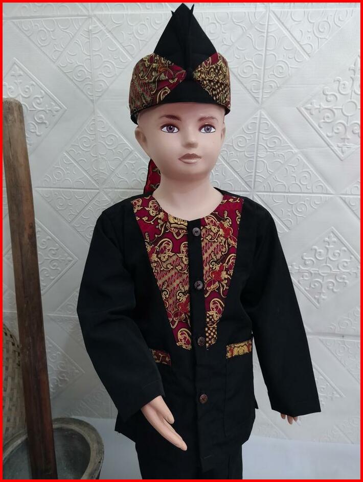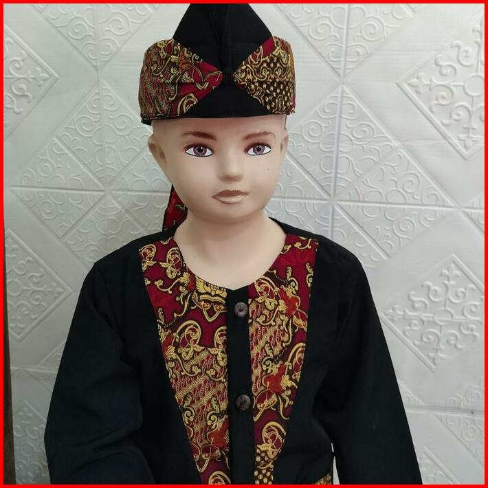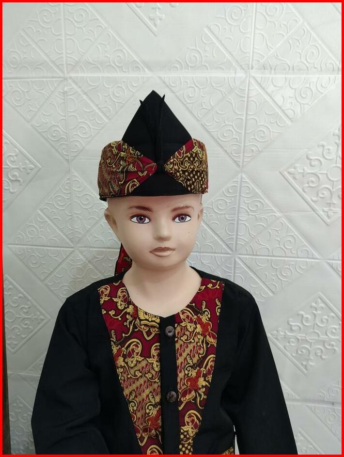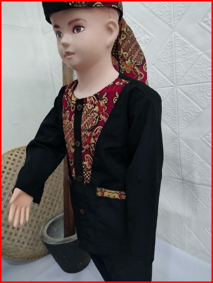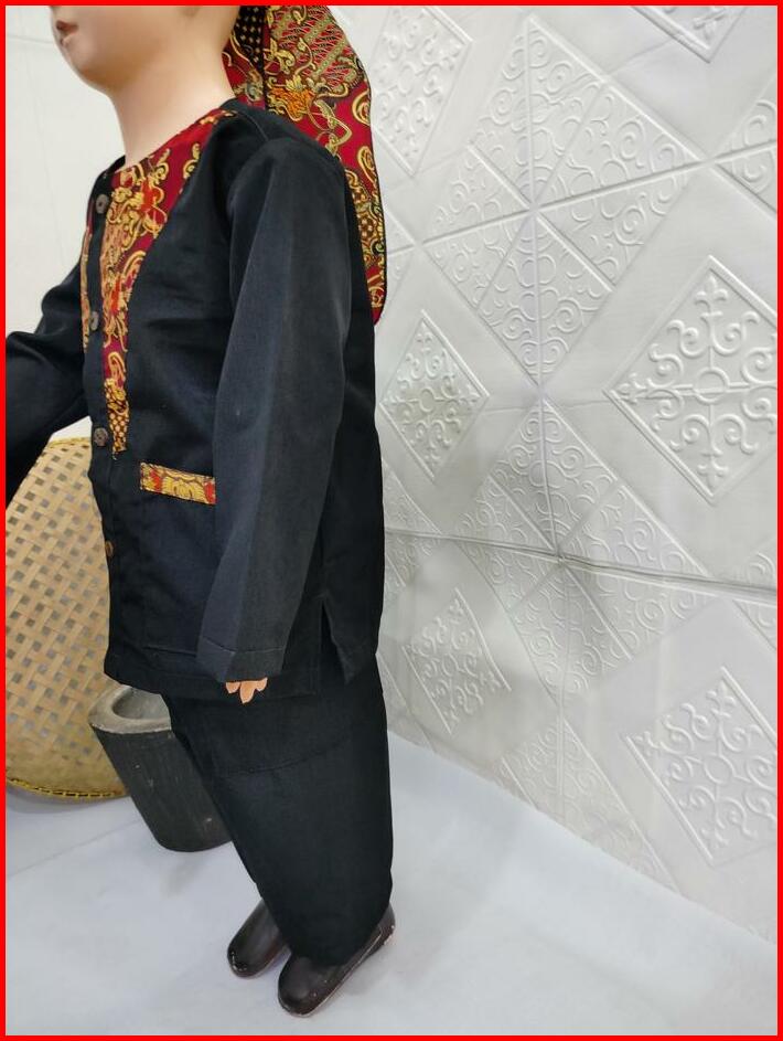 Pangsi Muslim Anak Polet Batik V Baju Celana Hitam Setelan Panjang Tangan Koko Peci Katun Motif Kombinasi Kurta